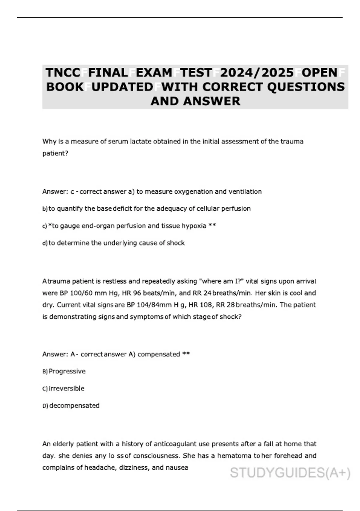 TNCCFFINALFEXAMFTESTF2024,,2025FOPENFBOOKFUPDATEDFWITH CORRECT QUESTIONS AND ANSWER 2024 TNCC final exam 2025 TNCC open book exam TNCC final exam questions and answers correct TNCC exam questions 2024 TNCC exam update 2025 TNCC test questions and answers updated final exam for TNCC 2024 2025 TNCC test preparation TNCC open book final 2024 latest TNCC exam answers TNCC final exam study guide open book TNCC test 2025 updated TNCC exam questions and answers TNCC exam preparation 2024 correct answers for TNCC exam 2025 TNCC exam guide TNCC final test questions 2024 TNCC exam resources TNCC 2025 exam review TNCC final exam preparation updated TNCC test answers TNCC 2024 exam pattern TNCC open book exam answers 2025 updated TNCC questions final exam TNCC updated questio