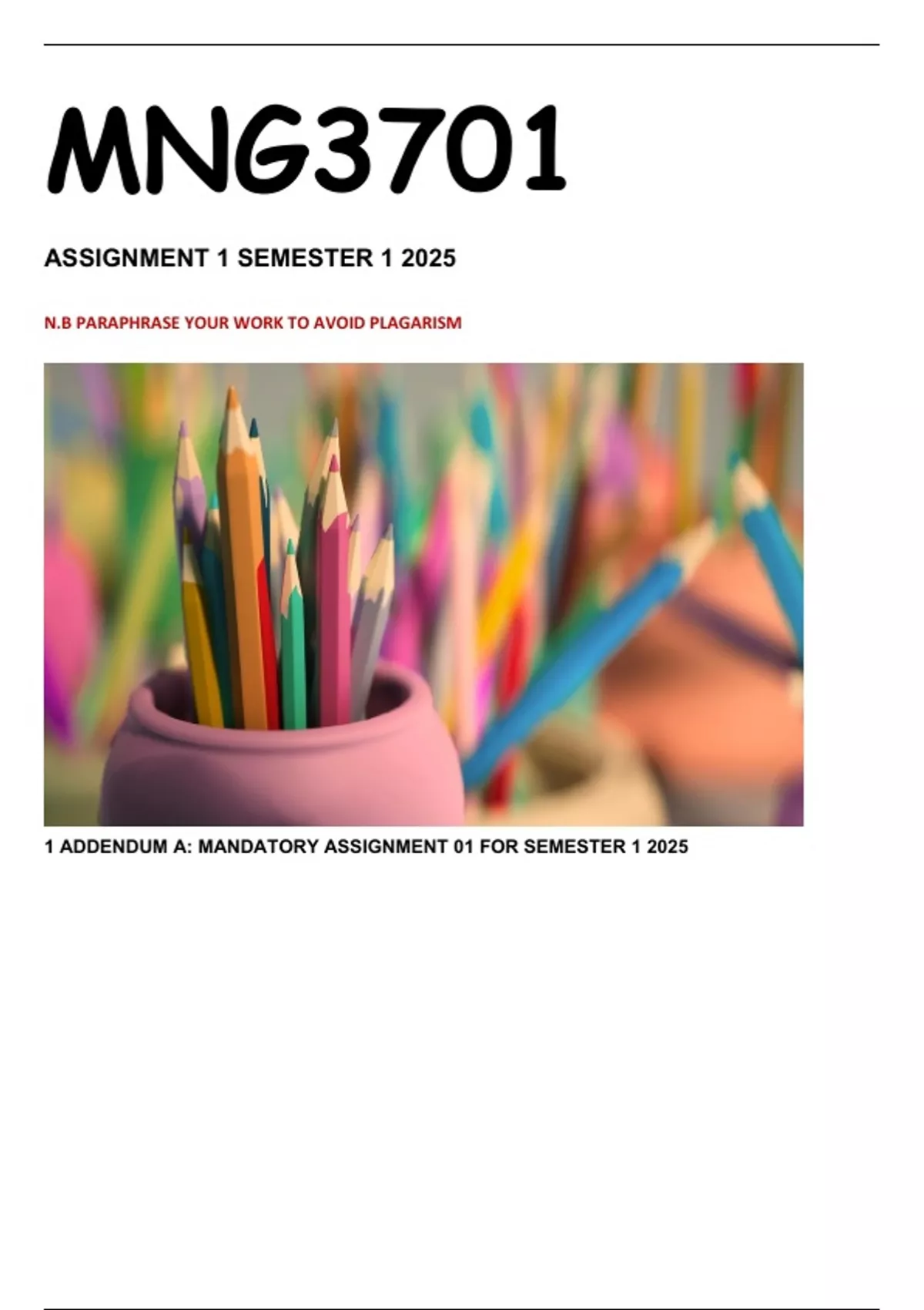 1 ADDENDUM A: MANDATORY ASSIGNMENT 01 FOR SEMESTER 1 2025