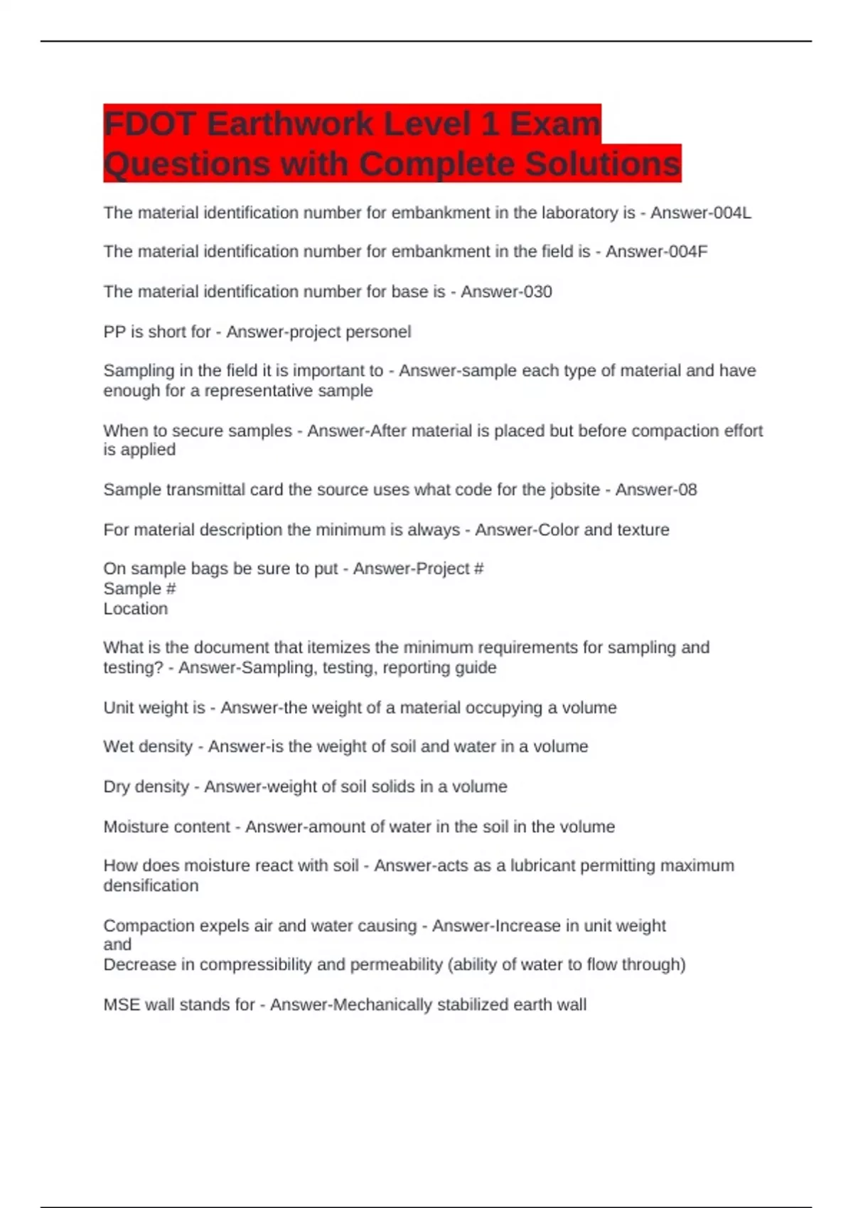 FDOT Earthwork Level 1 Exam
