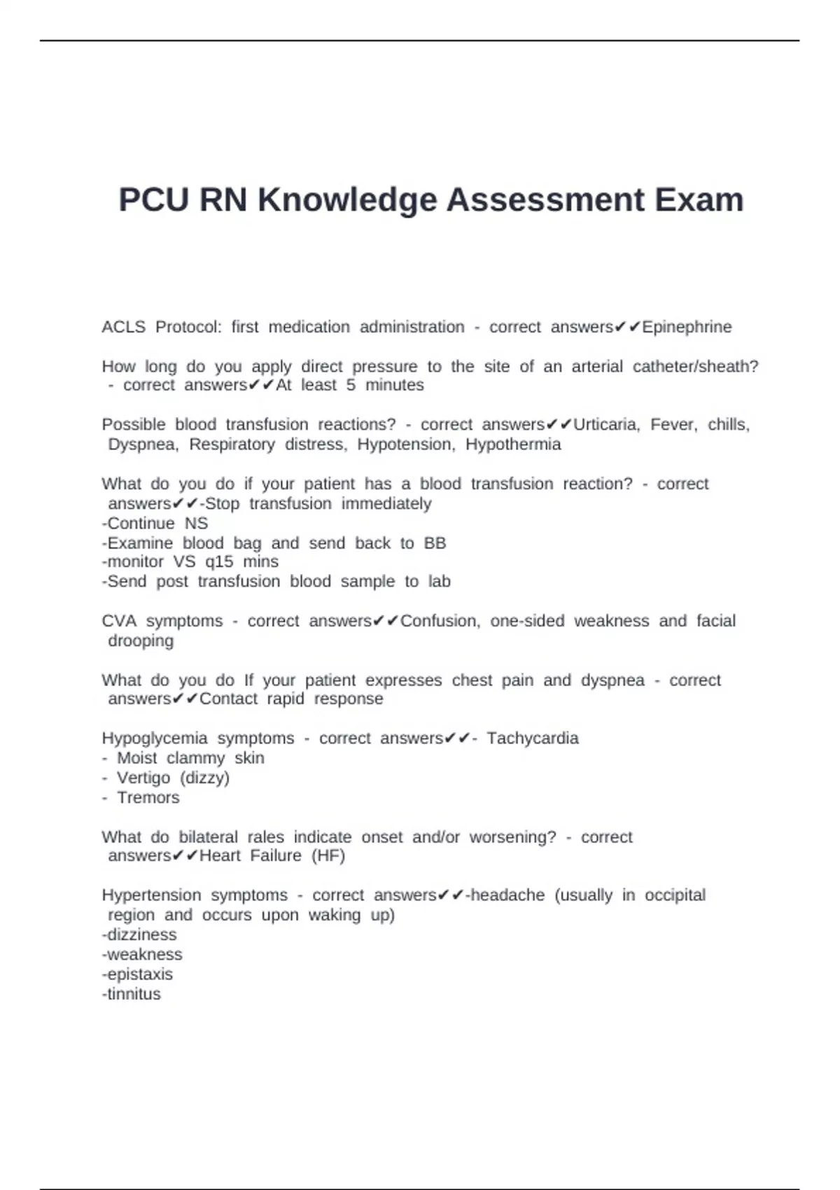 Possible bblood btransfusion breactions? b- bcorrect banswers✔✔Urticaria, bFever, bchills,