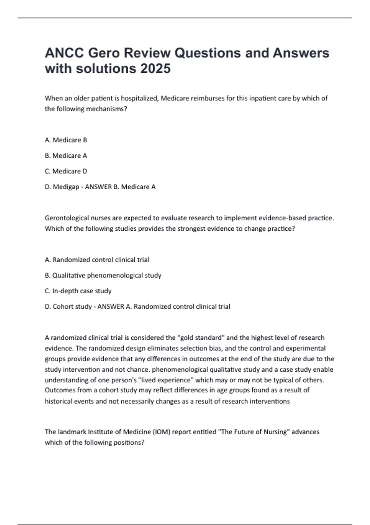 D. Medigap - ANSWER B. Medicare A