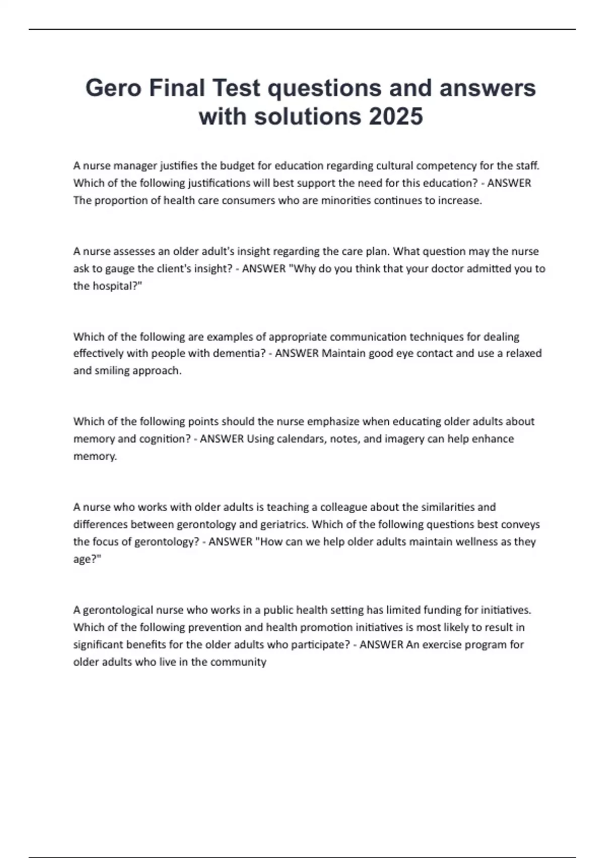 Gero Final Test questions and answers with solutions 2025