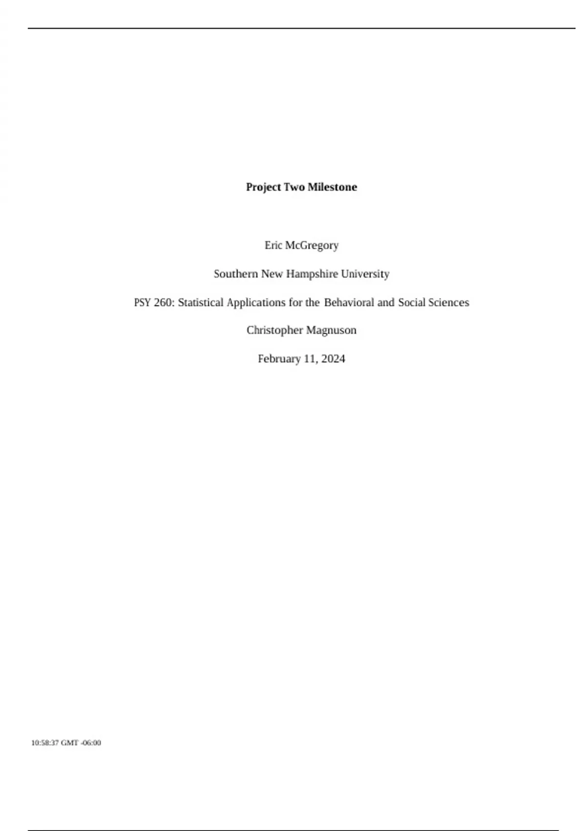 Summary Project Two Milestone Eric McGregory Southern New Hampshire University PSY 260: Stati
