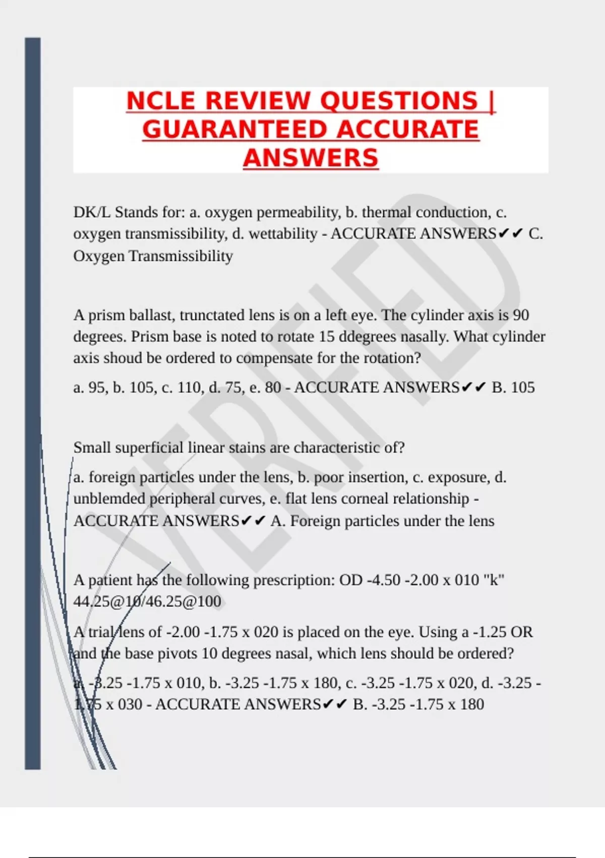 oxygen transmissibility, d. wettability - ACCURATE ANSWERS✔✔ C.