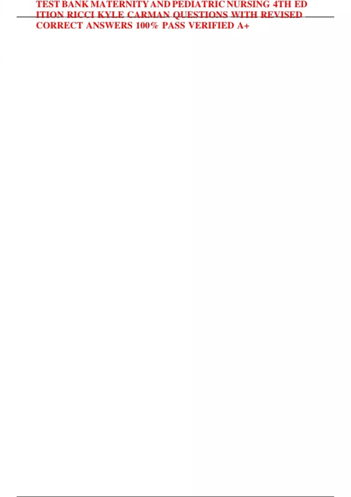, TEST BANK MATERNITY AND PEDIATRIC NURSING