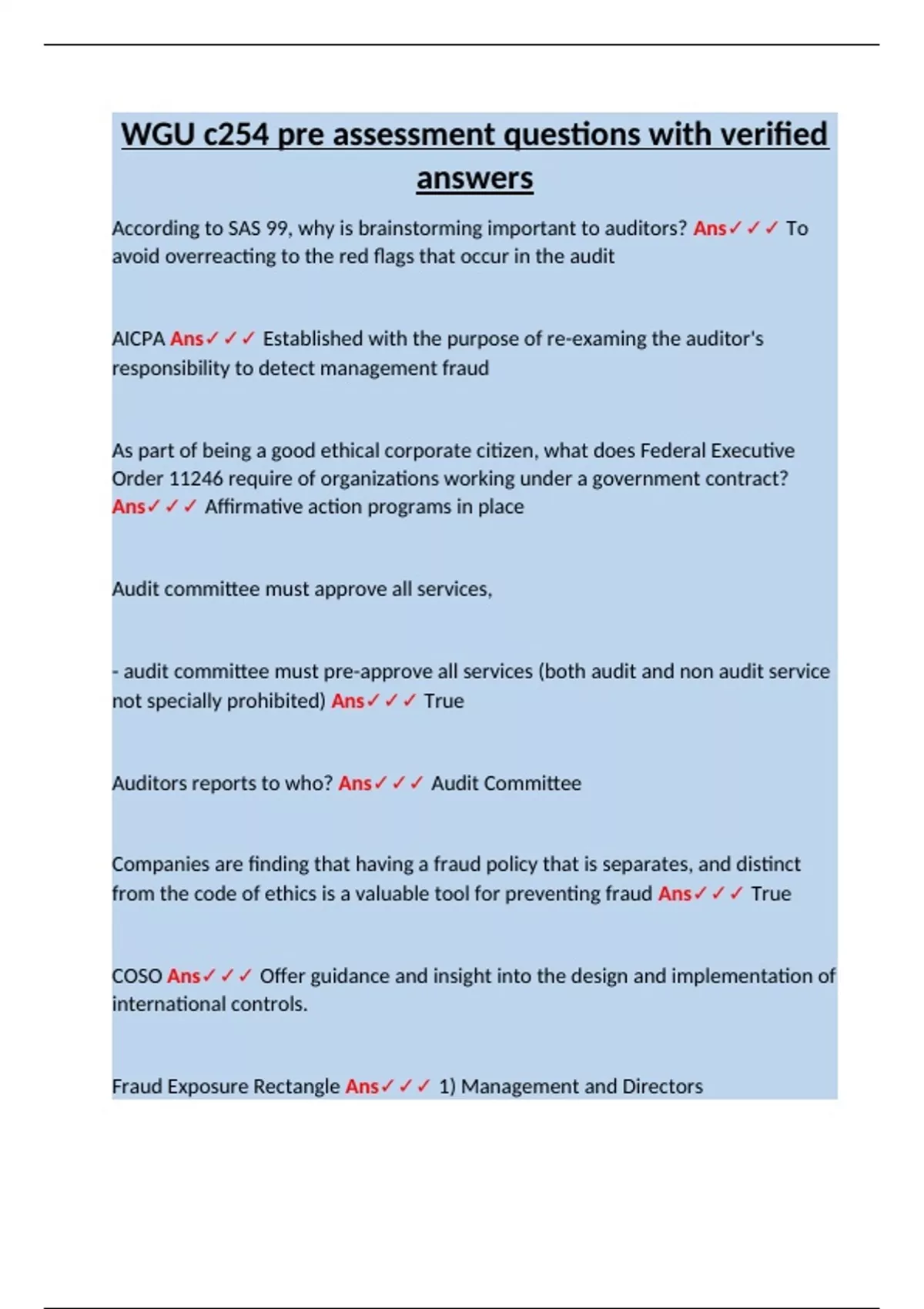 SAS 99 Ans✓✓✓ Identified ways for auditors to assess fraud risk