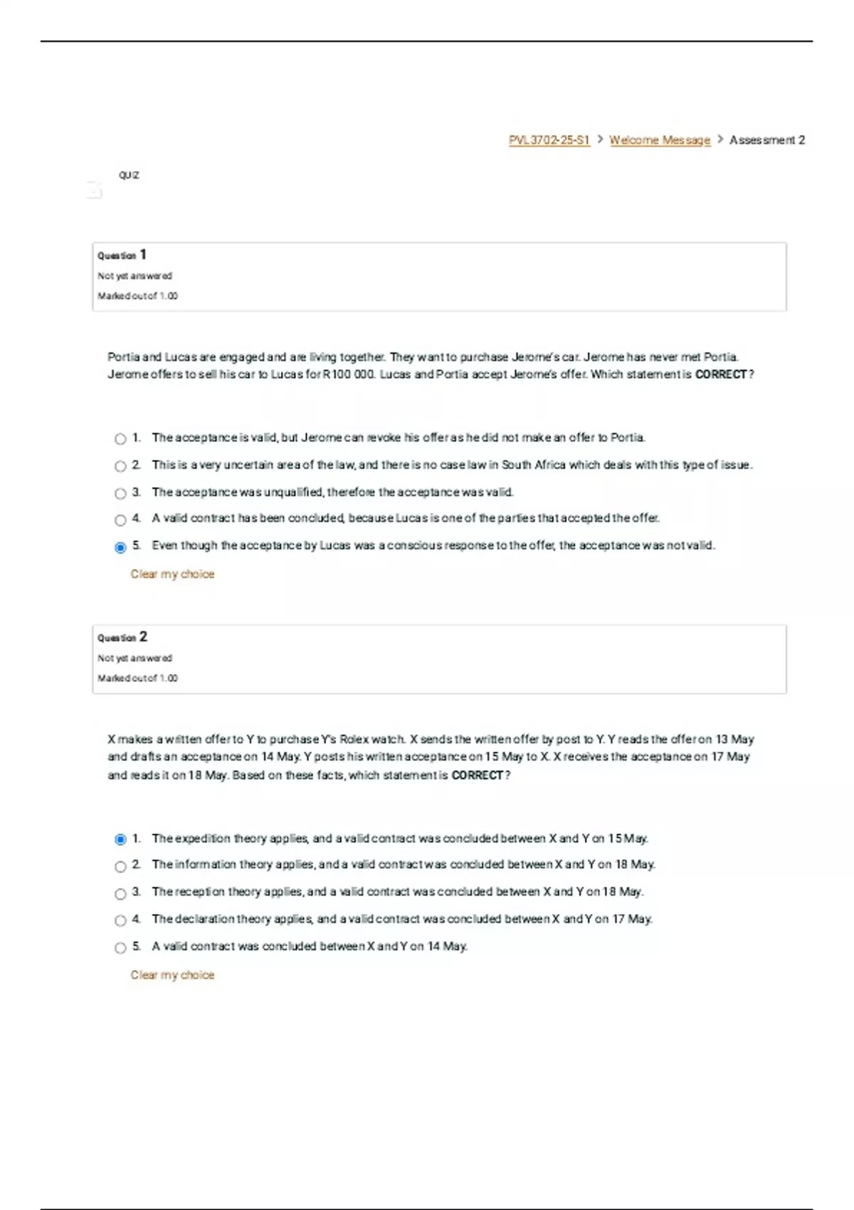 Jerome offers to sell his car to Lucas for R100 000. Lucas and Portia accept Jerome’s offer. Which statement is CORRECT?