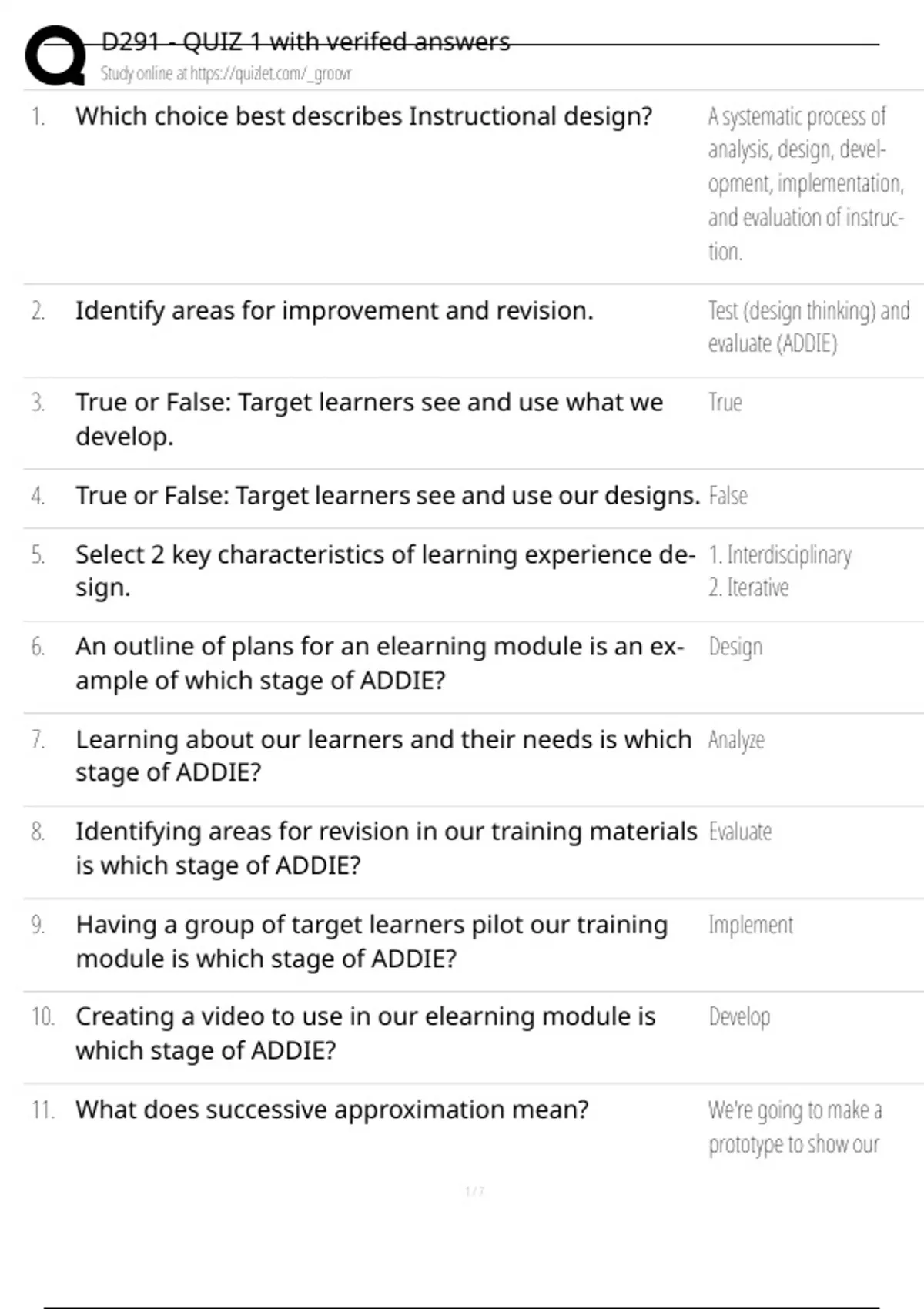 1. Which choice best describes Instructional design? A systematic process of