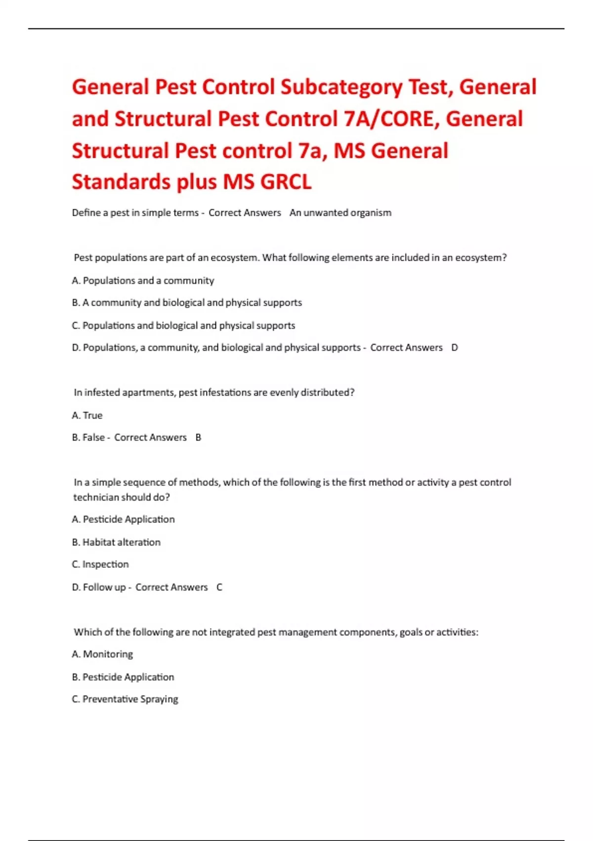 General Pest Control Subcategory Test, General and Structural Pest Control 7A/CORE, General Structural Pest control 7a, MS General Standards plus MS GRCL