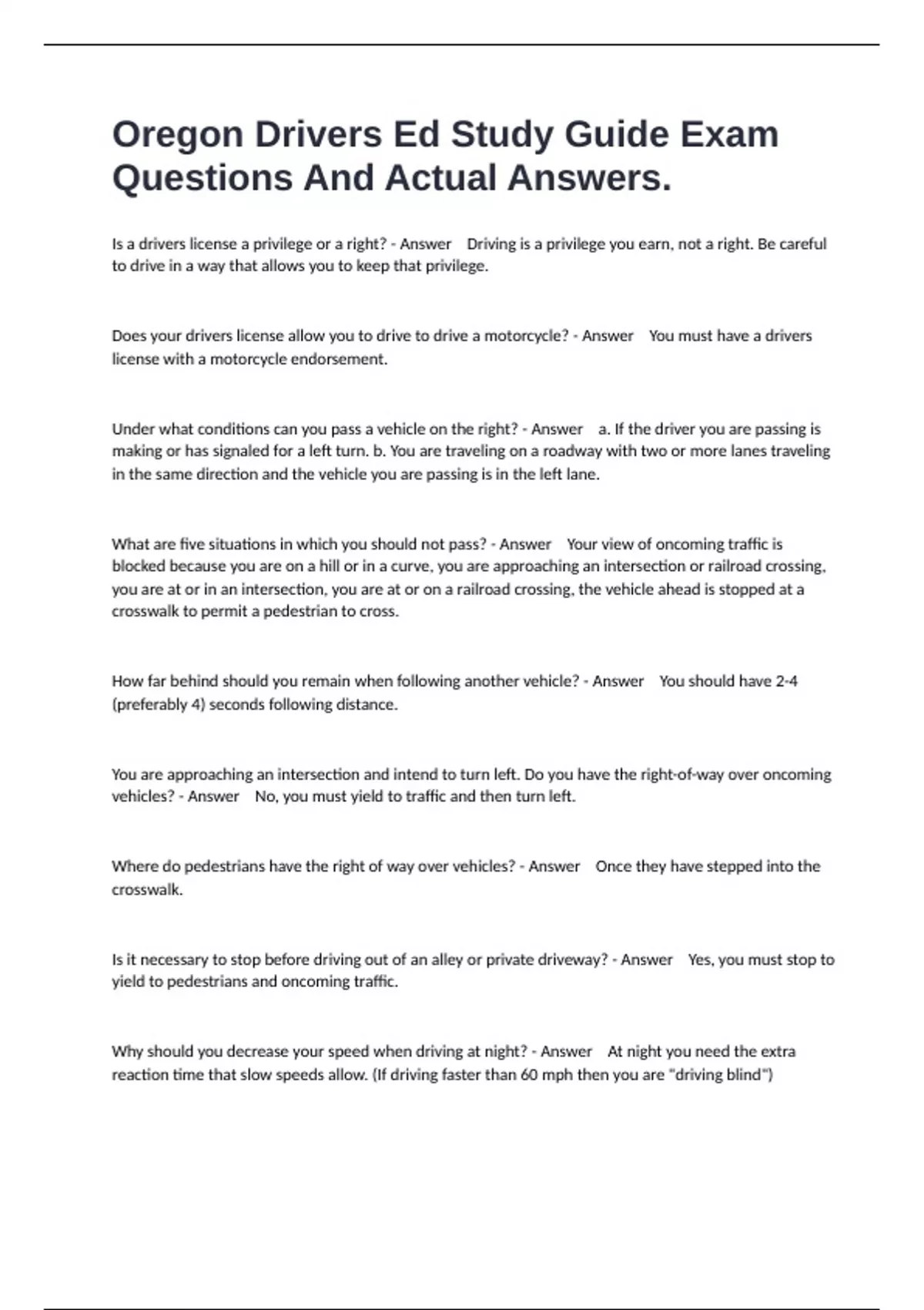 Is it necessary to stop before driving out of an alley or private driveway? - Answer Yes, you must stop to