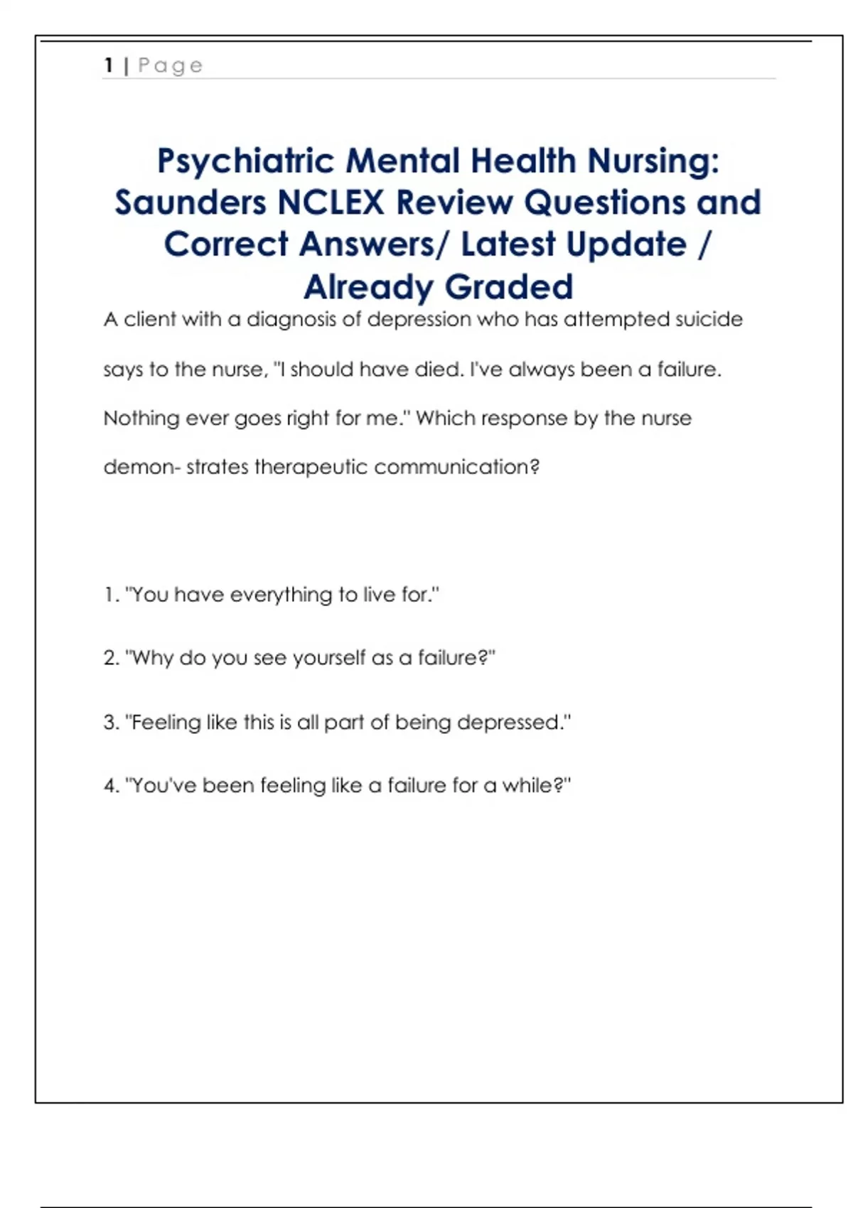 the client. The remain- ing options are not therapeutic responses since
