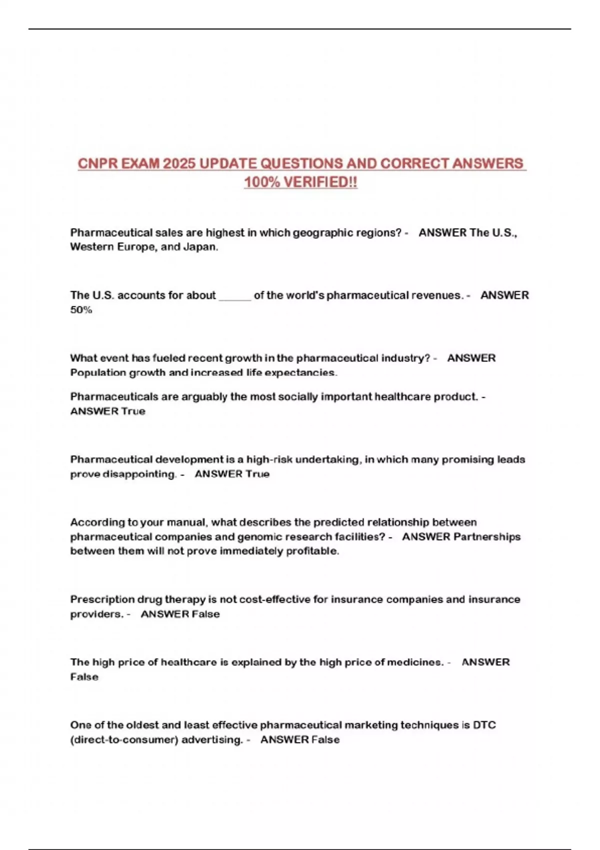 CNPR EXAM 2025 UPDATE QUESTIONS AND CORRECT ANSWERS 100% VERIFIED!!