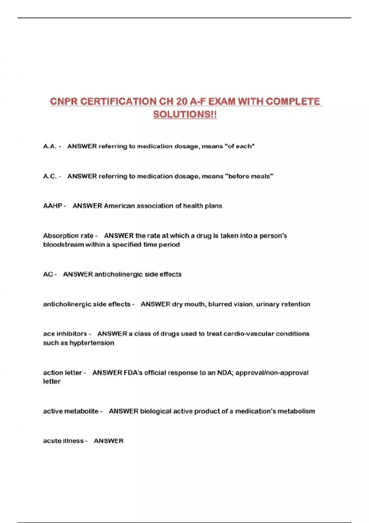 CNPR CERTIFICATION CH 20 A-F EXAM WITH COMPLETE SOLUTIONS!!...
