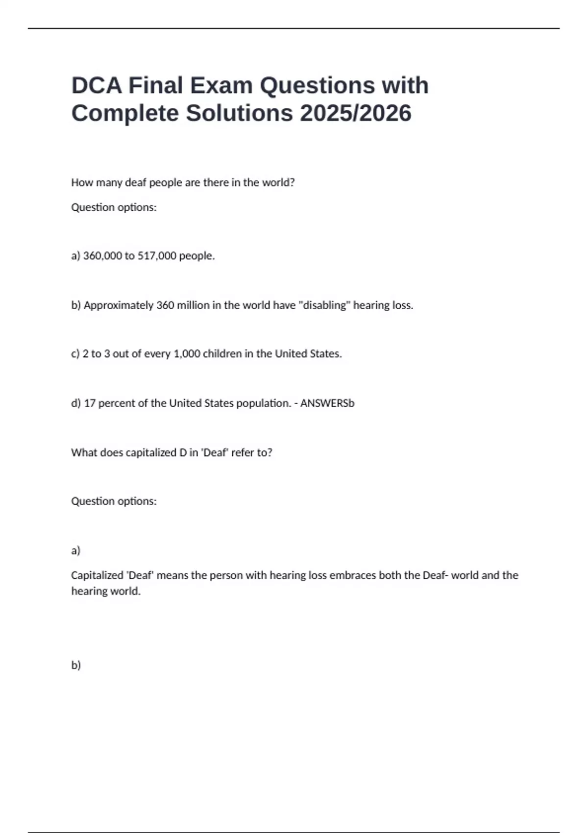 a) Lowercase deaf means the culture, language and values of the Deaf people are embraced by