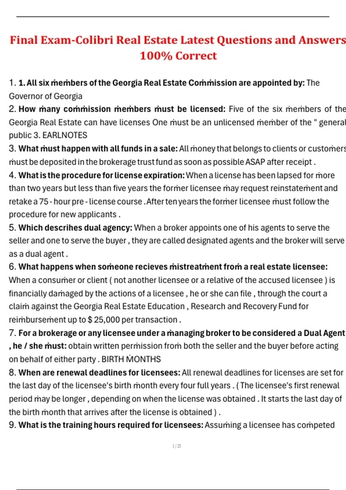 Final Exam-Colibri Real Estate Latest Questions and Answers 100% Correct