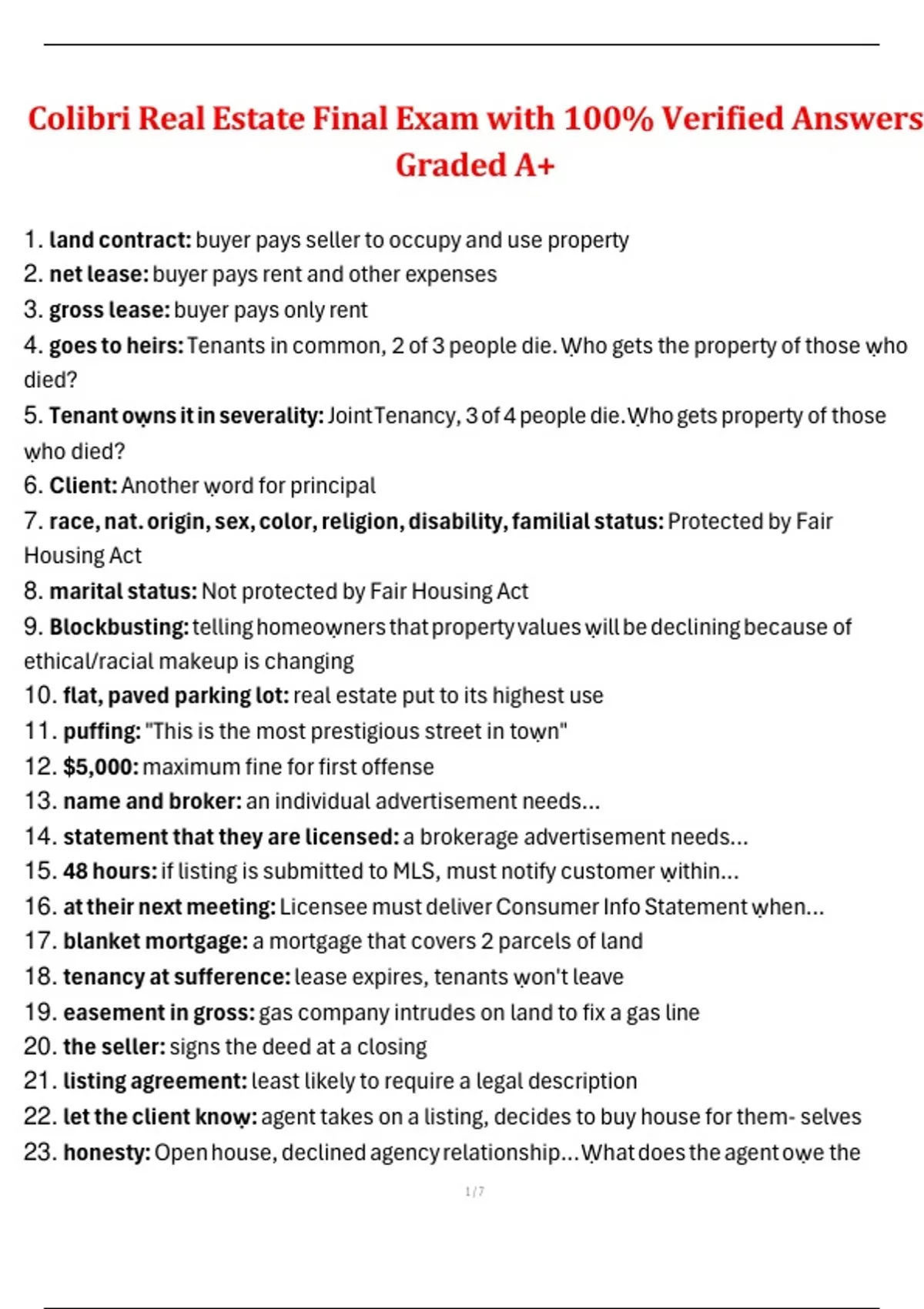 Colibri Real Estate exam answers Real estate final exam answers 100% verified exam answers real estate Colibri exam questions and answers Real estate license exam prep Colibri real estate graded exam Real estate test answers A+ Final exam real estate Colibri Colibri real estate practice test Verified real estate exam answers Passing Colibri real estate exam Real estate exam study guide Colibri real estate certification exam Real estate exam preparation Colibri Colibri exam tips Real estate final exam preparation Colibri real estate course answers Real estate license practice questions Colibri real estate test review Exam solutions real estate Colibri real estate final quiz Real estate exam coaching Real estate license exam practice Colibri final exam study materials A+ graded Colibri exam answers Colibri real estate exam help Real estate certification final exam Colibri test passing strategies Real estate exam guide Colibri 1. Colibri Real Estate final exam study guide 2. How to pass Colibri Real Estate exam with flying colors 3. Colibri Real Estate exam verified answers 2023 4. Best strategies for acing Colibri Real Estate final 5. Colibri Real Estate exam prep with guaranteed A+ grade 6. Top tips for Colibri Real Estate exam success 7. Colibri Real Estate final exam practice questions 8. Where to find reliable Colibri Real Estate exam answers 9. Colibri Real Estate exam cheat sheet with verified answers 10. How long to study for Colibri Real Estate final exam 11. Colibri Real Estate exam difficulty level and pass rate 12. Colibri Real Estate final exam format and structure 13. Best online resources for Colibri Real Estate exam prep 14. Colibri Real Estate exam retake policy and fees 15. How to overcome test anxiety for Colibri Real Estate final 16. Colibri Real Estate exam scoring system explained 17. Real-life experiences passing Colibri Real Estate exam 18. Colibri Real Estate exam study schedule for working professionals 19. Common mistakes to avoid on Colibri Real Estate final exam 20. Colibri Real Estate exam time management strategies 21. What to expect on Colibri Real Estate exam day 22. Colibri Real Estate exam calculator requirements 23. How to interpret Colibri Real Estate exam results 24. Colibri Real Estate exam preparation courses reviews 25. Colibri Real Estate final exam FAQs and answers