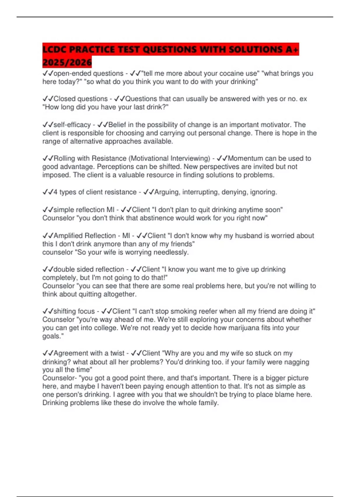 LCDC PRACTICE TEST QUESTIONS WITH SOLUTIONS A+