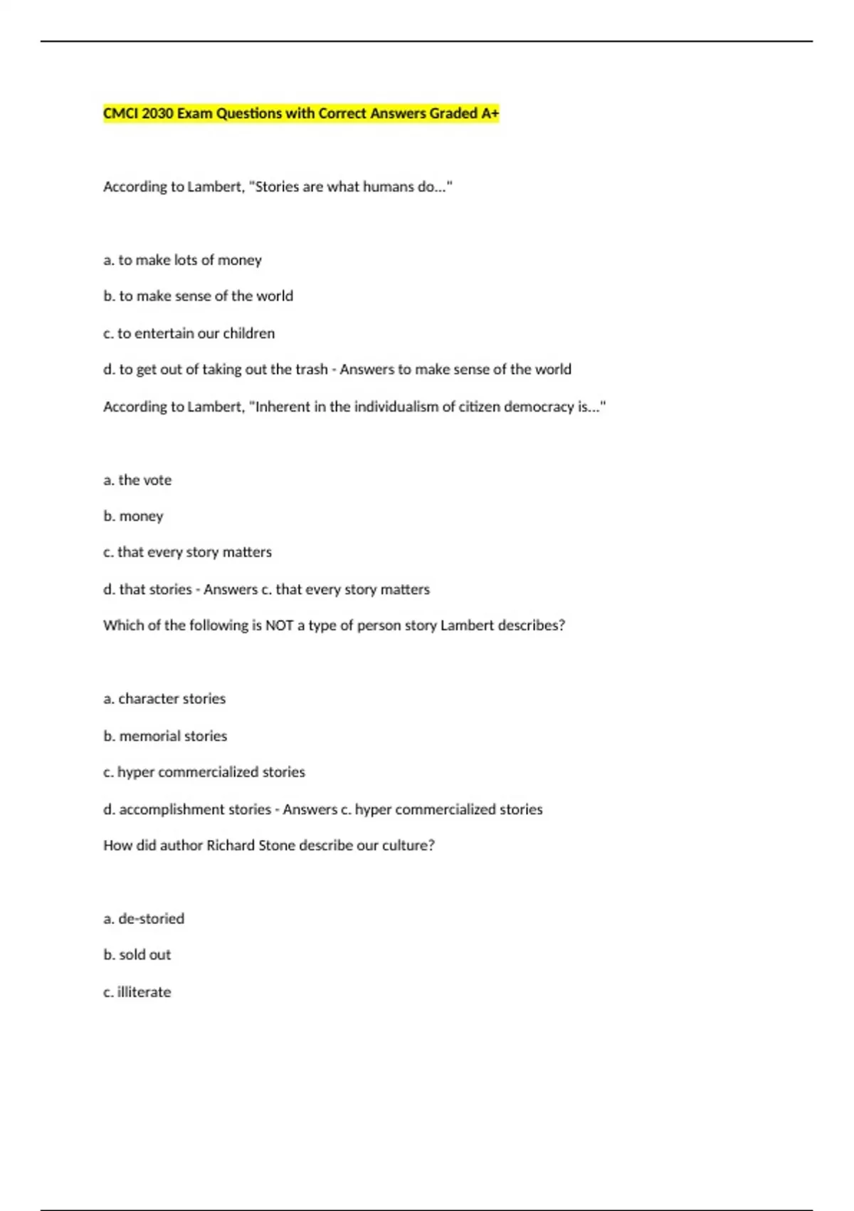 d. accomplishment stories - Answers c. hyper commercialized stories