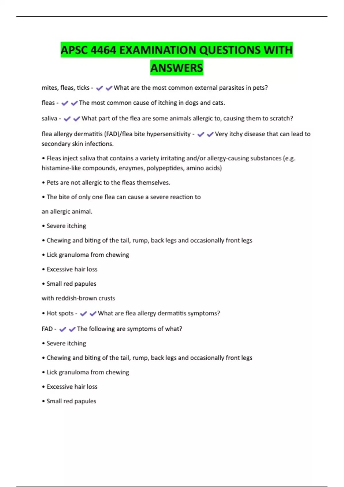 flea allergy dermatitis (FAD)/flea bite hypersensitivity - Very itchy disease that can lead to