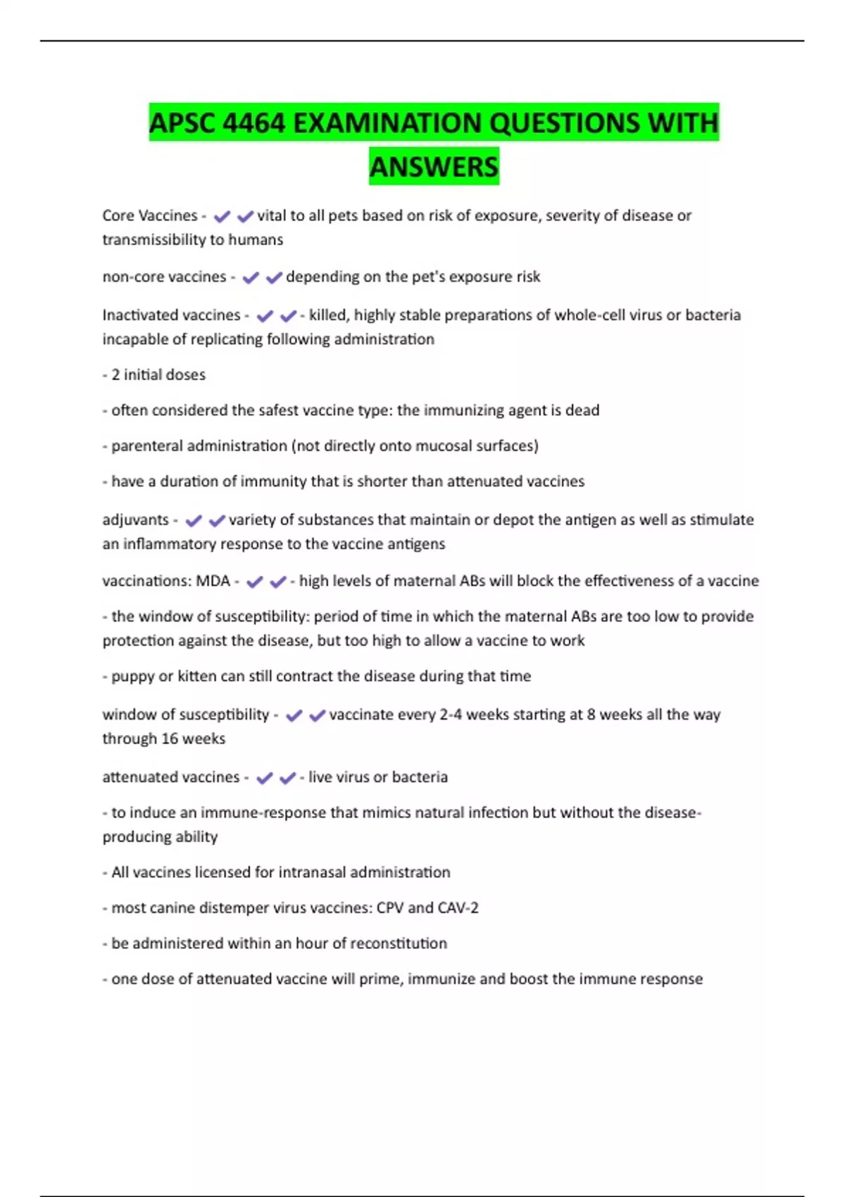 APSC 4464 Companion Animal Quizzes | Verified and Accurate | Virginia Tech