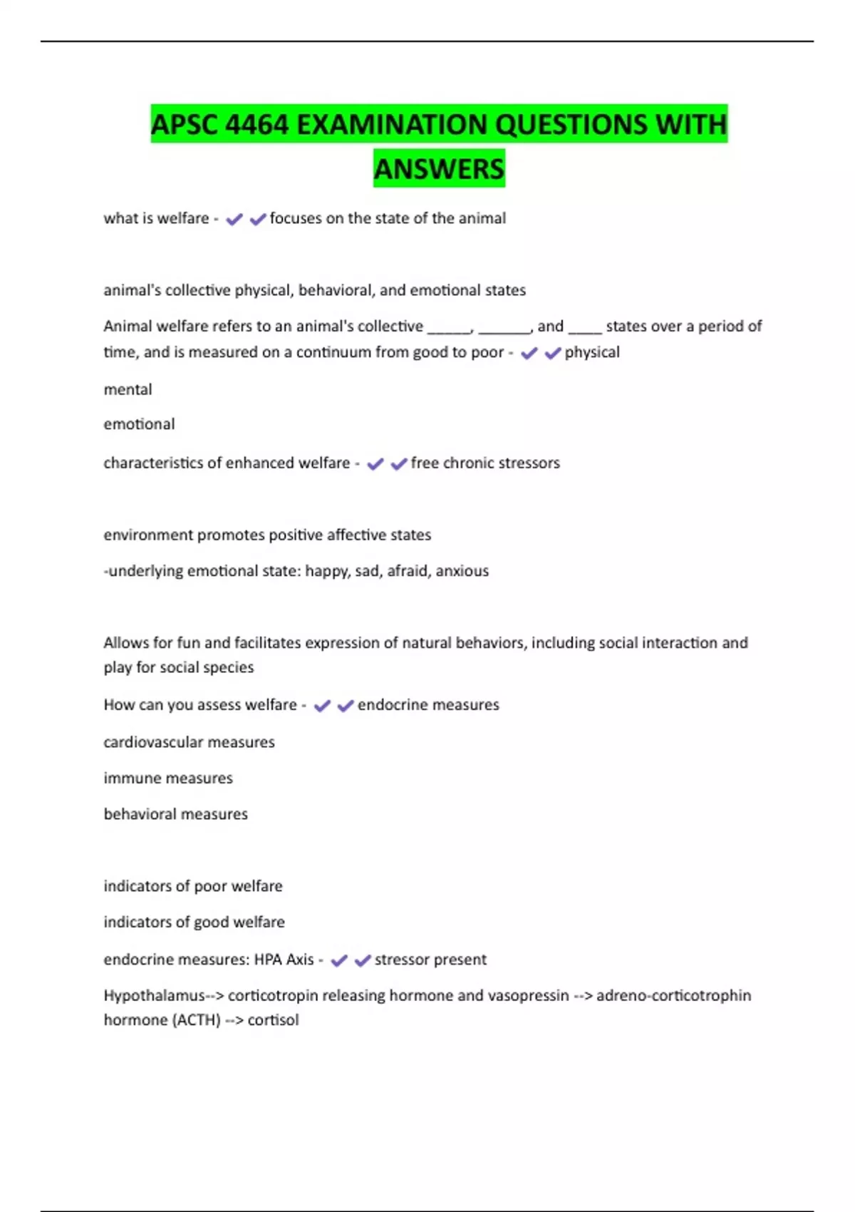 APSC 4464 Complete Quiz Guide | VT | 100% Answer Accuracy