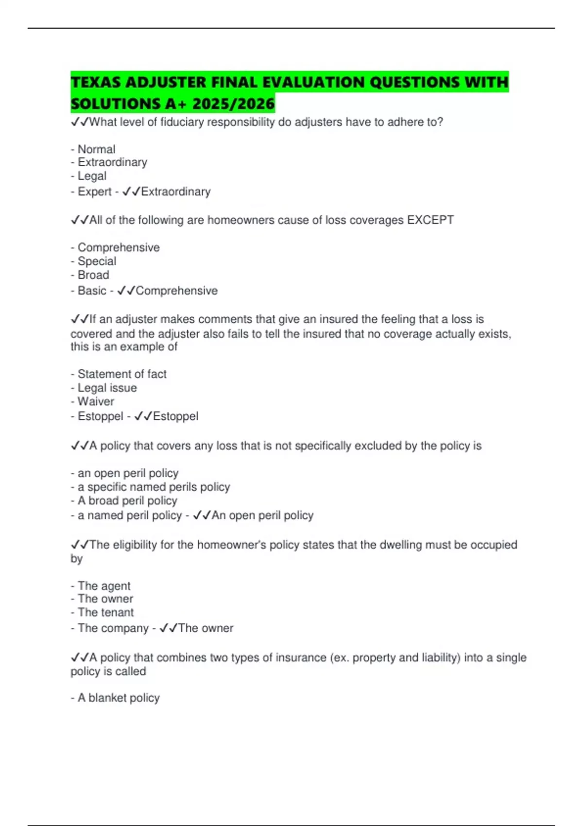 ✔✔A policy that covers any loss that is not specifically excluded by the policy is