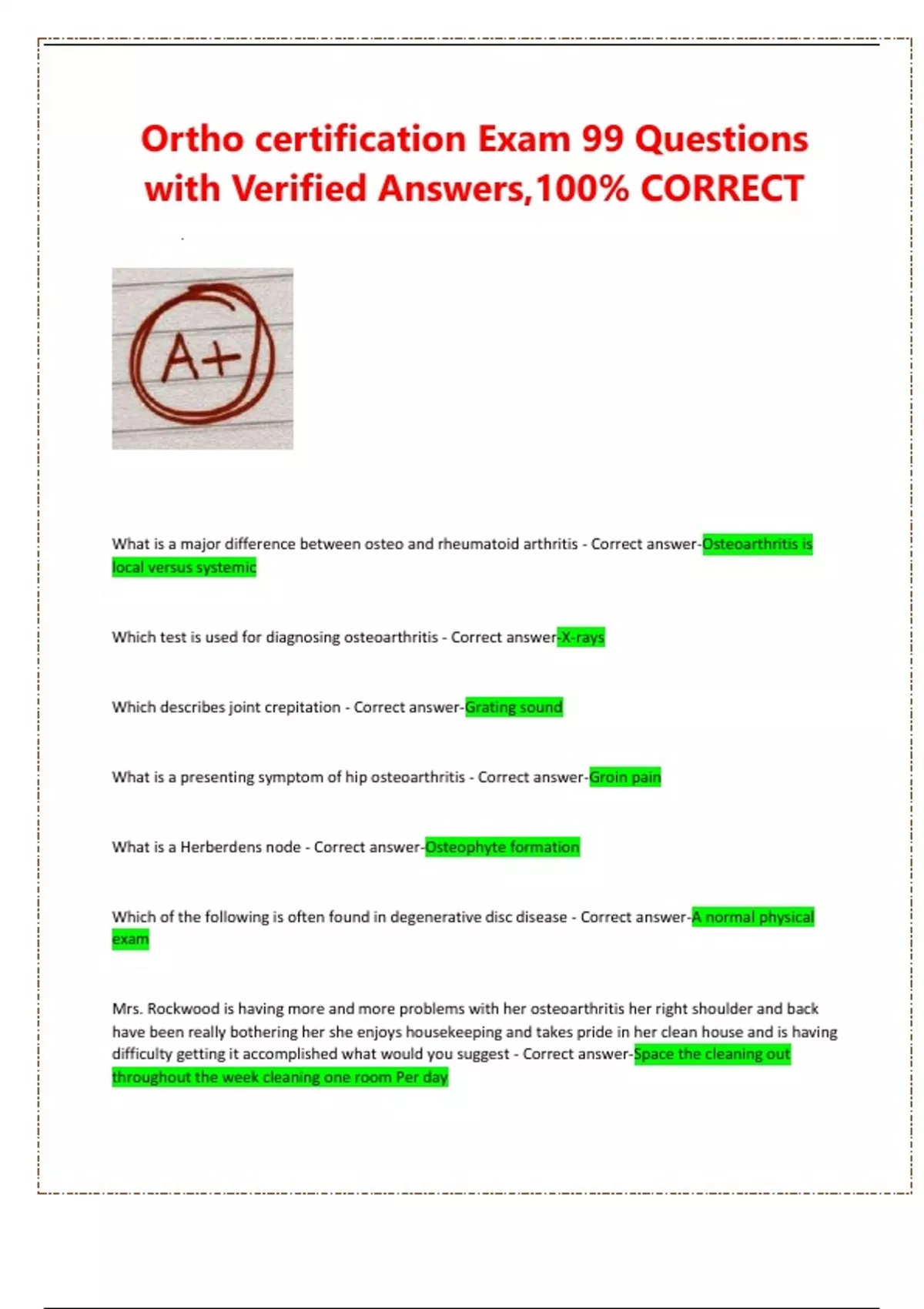 Ortho certification Exam 99 Questions with Verified Answers,100% CORRECT