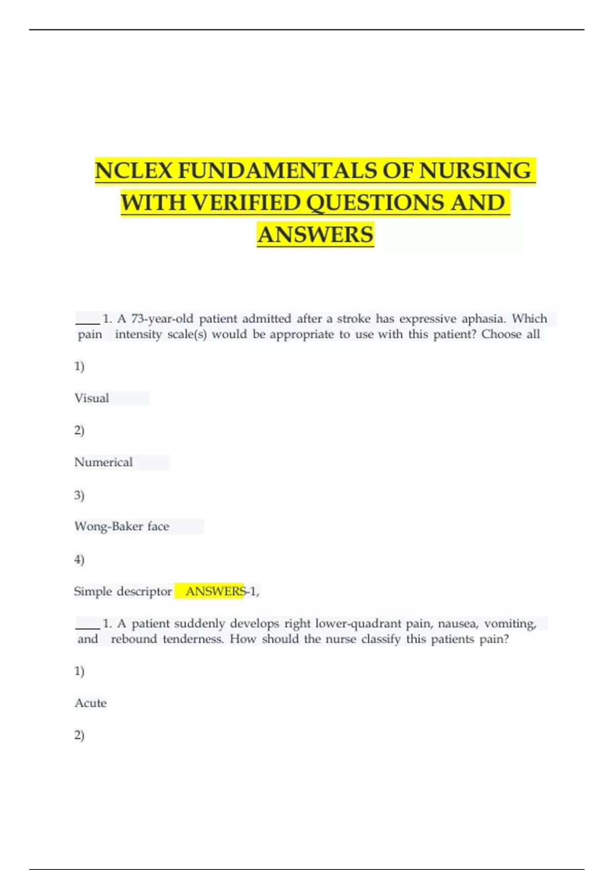 NCLEX FUNDAMENTALS OF NURSING WITH VERIFIED QUESTIONS AND ANSWERS.
