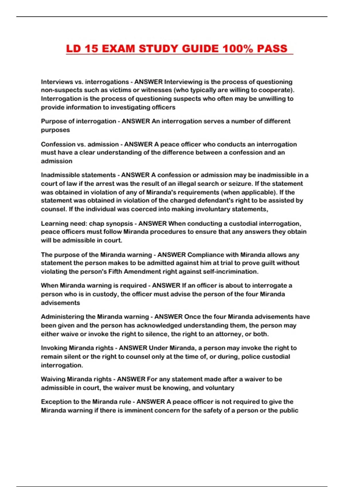 LD 15 EXAM STUDY GUIDE 100% PASS ...