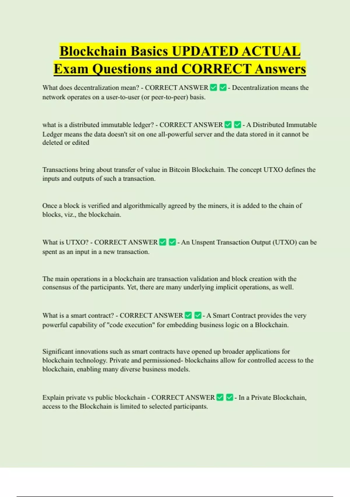 What is UTXO? - CORRECT ANSWER - An Unspent Transaction Output (UTXO) can be