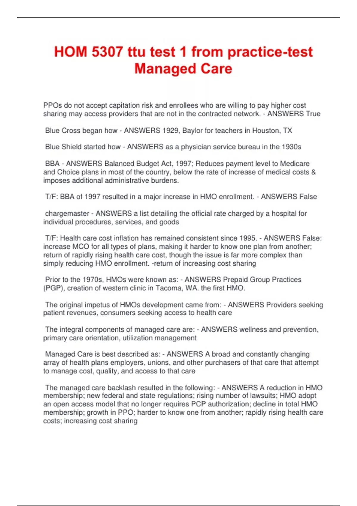 Managed Care is best described as: - ANSWERS A broad and constantly changing
