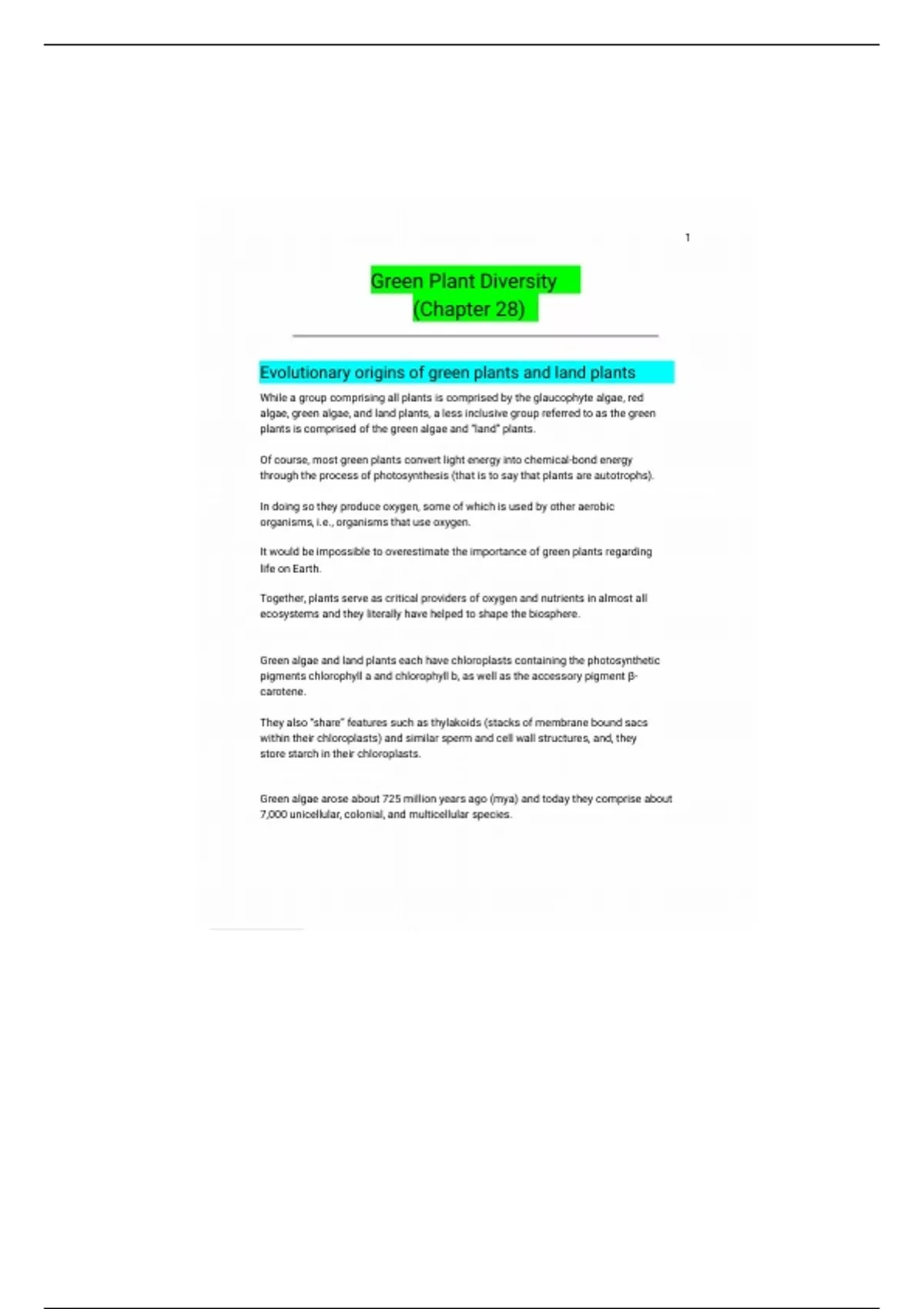 This is a comprehensive and detailed note on Chapter 28; Plant Diversity for Biol 1110. An Essential Study Resource just for YOU!!