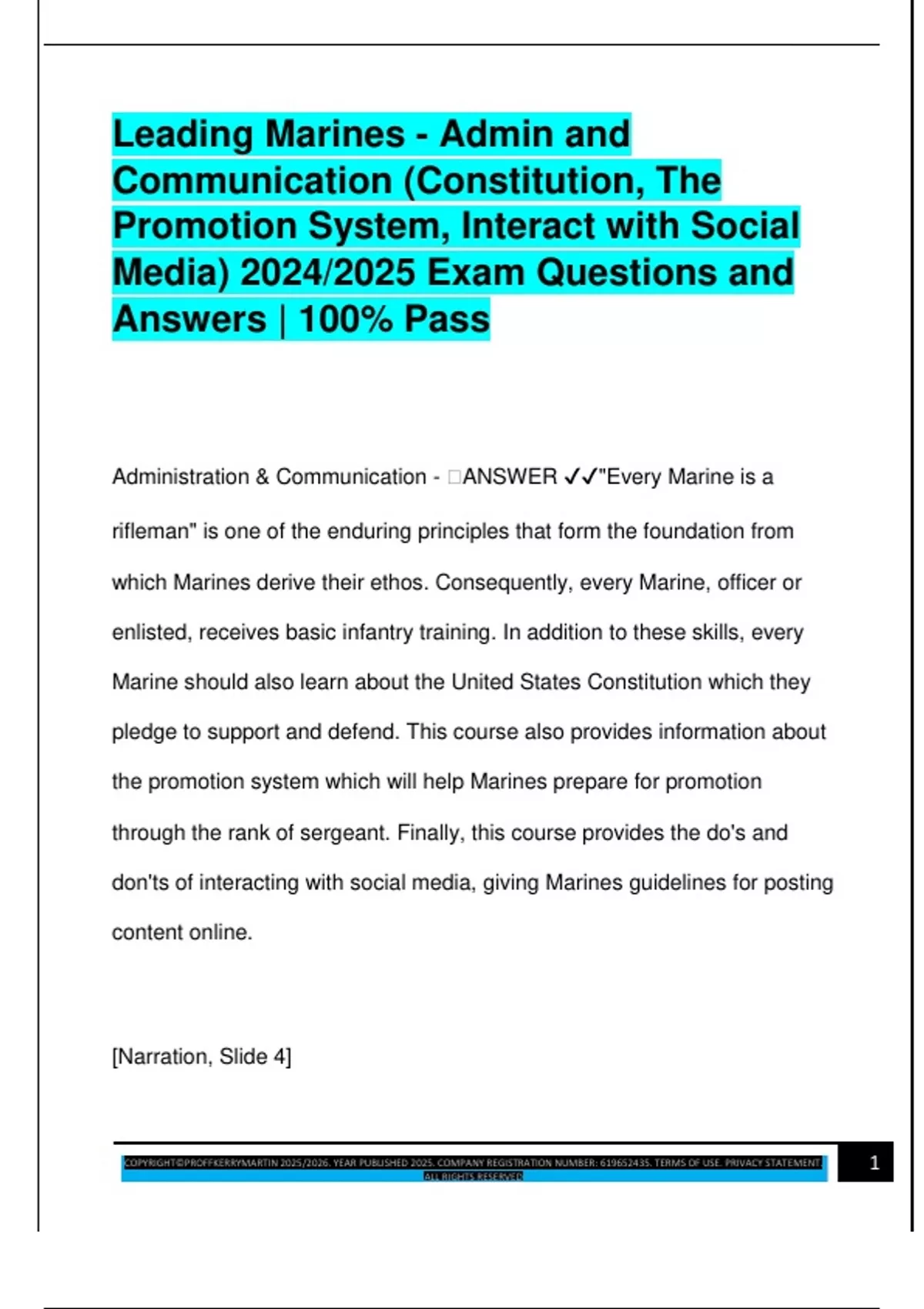 Administration & Communication - 🧠ANSWER ✔✔"Every Marine is a