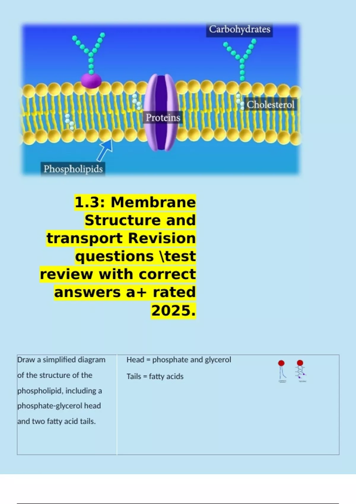 Draw a simplified diagram Head = phosphate and glycerol