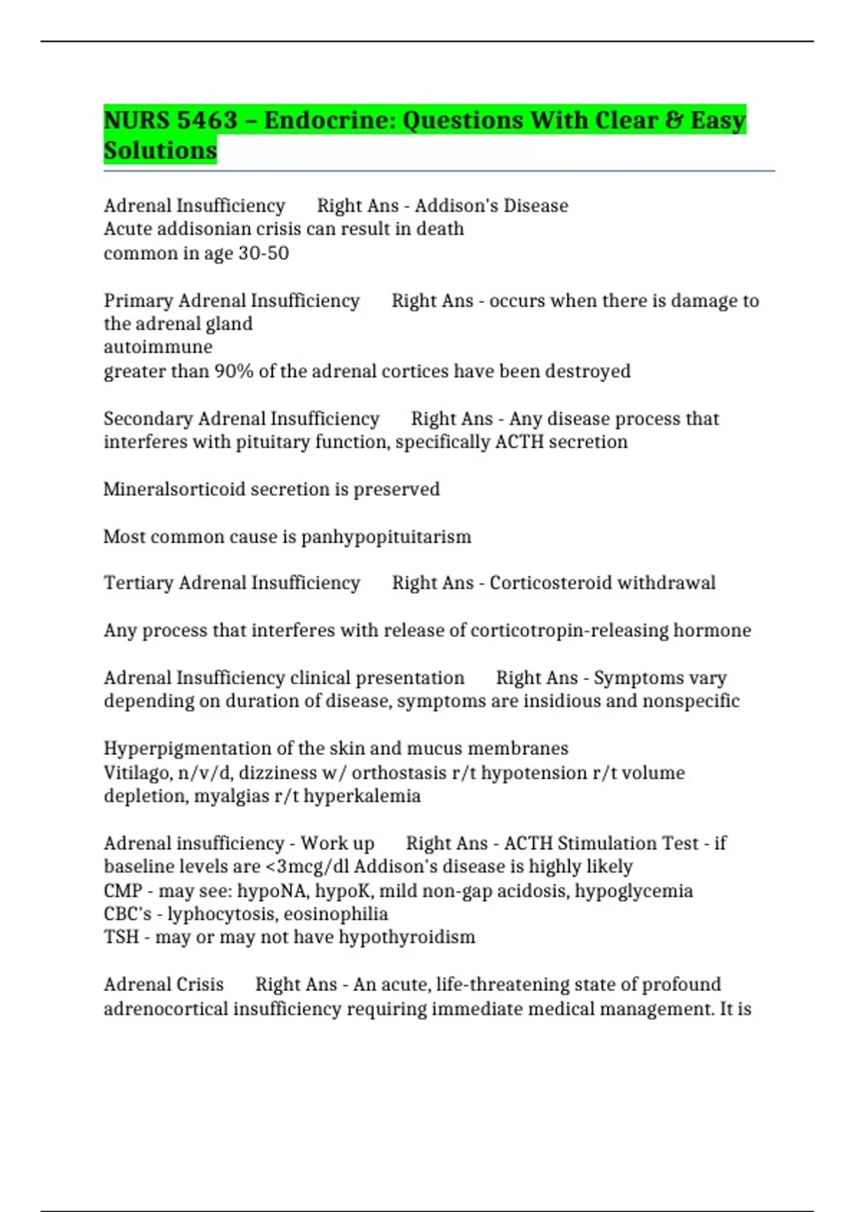 Adrenal Insufficiency Right Ans - Addison's Disease