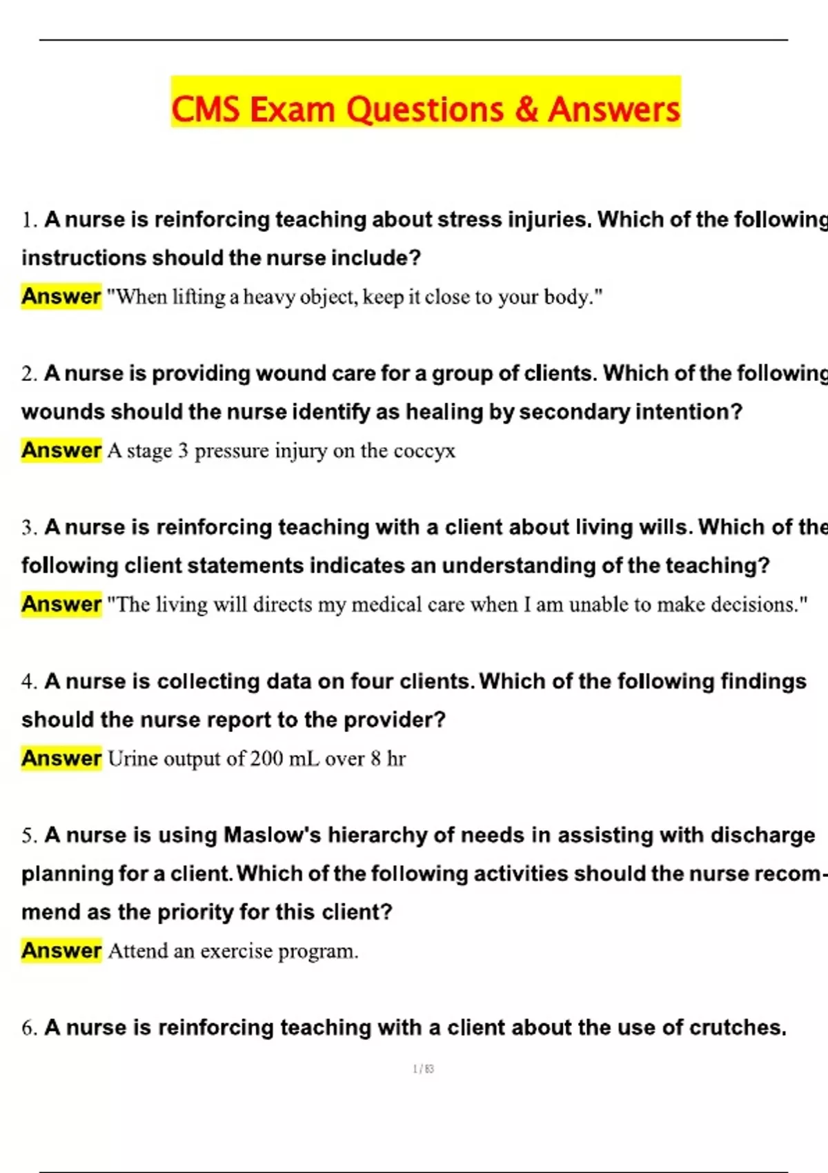CMS EXAM (Latest 2025 / 2026 Update) Questions and Verified Answers | 100% Correct | Grade A+