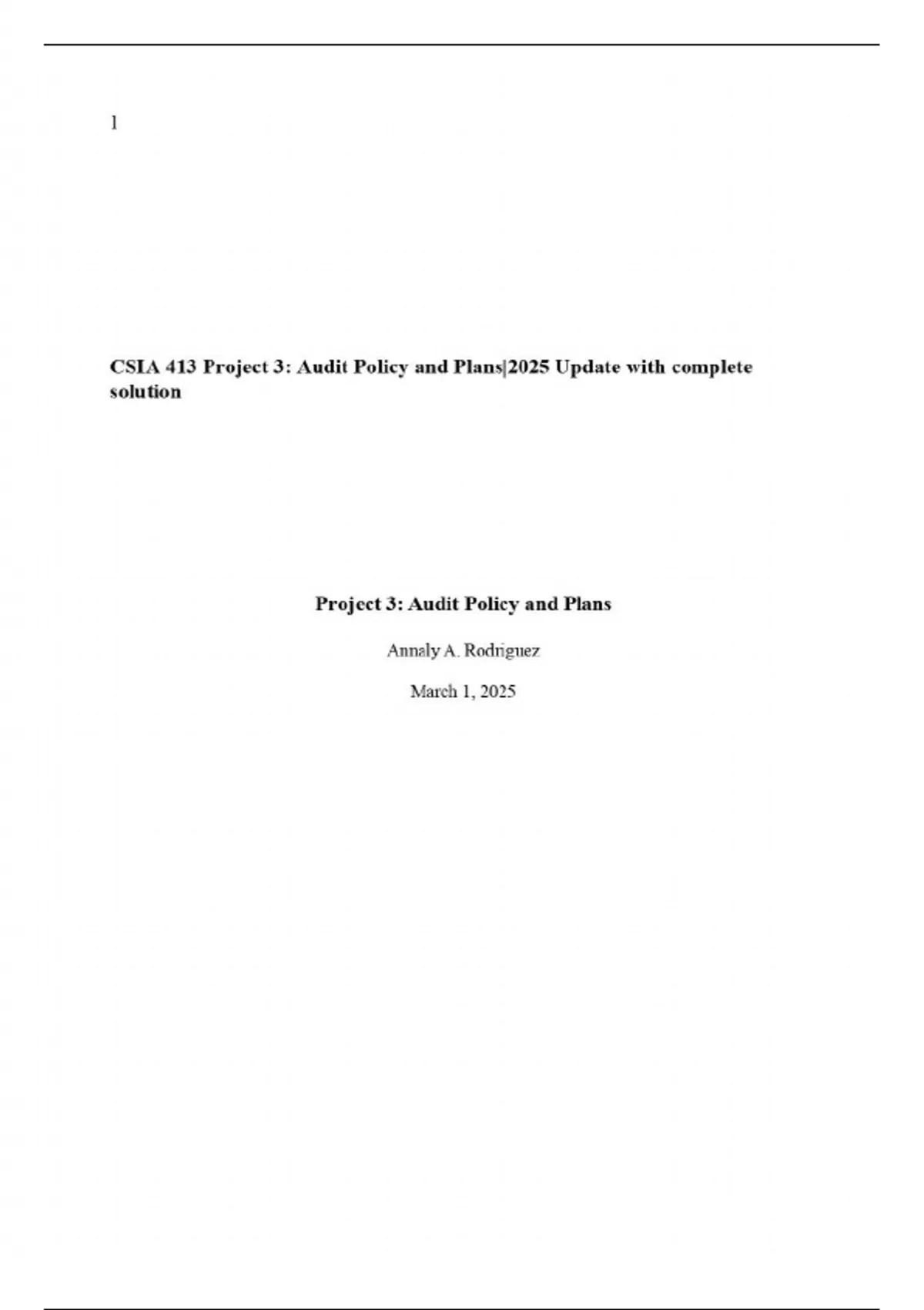 CSIA 413 Project 3: Audit Policy and Plans|2025 Update with complete solution