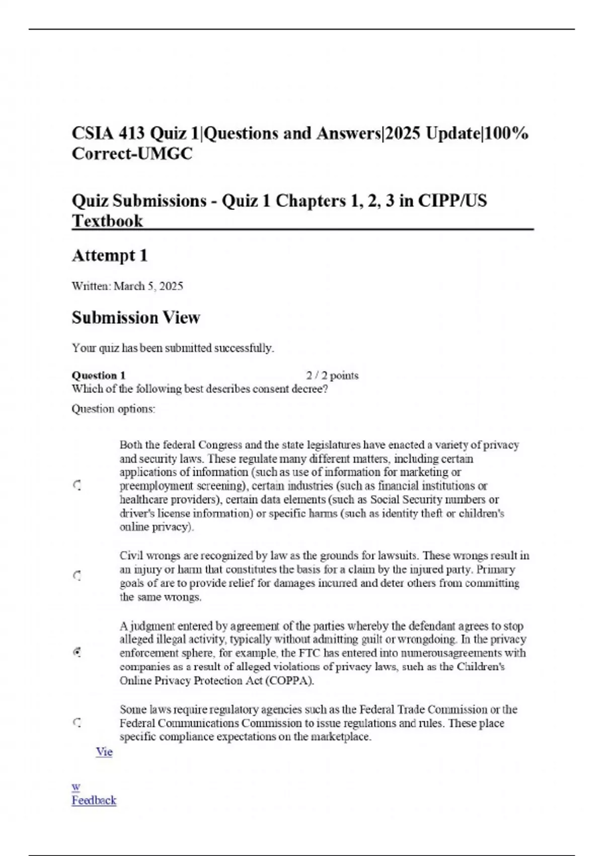 CSIA 413 Quiz 1|Questions and Answers|2025 Update|100% Correct-UMGC