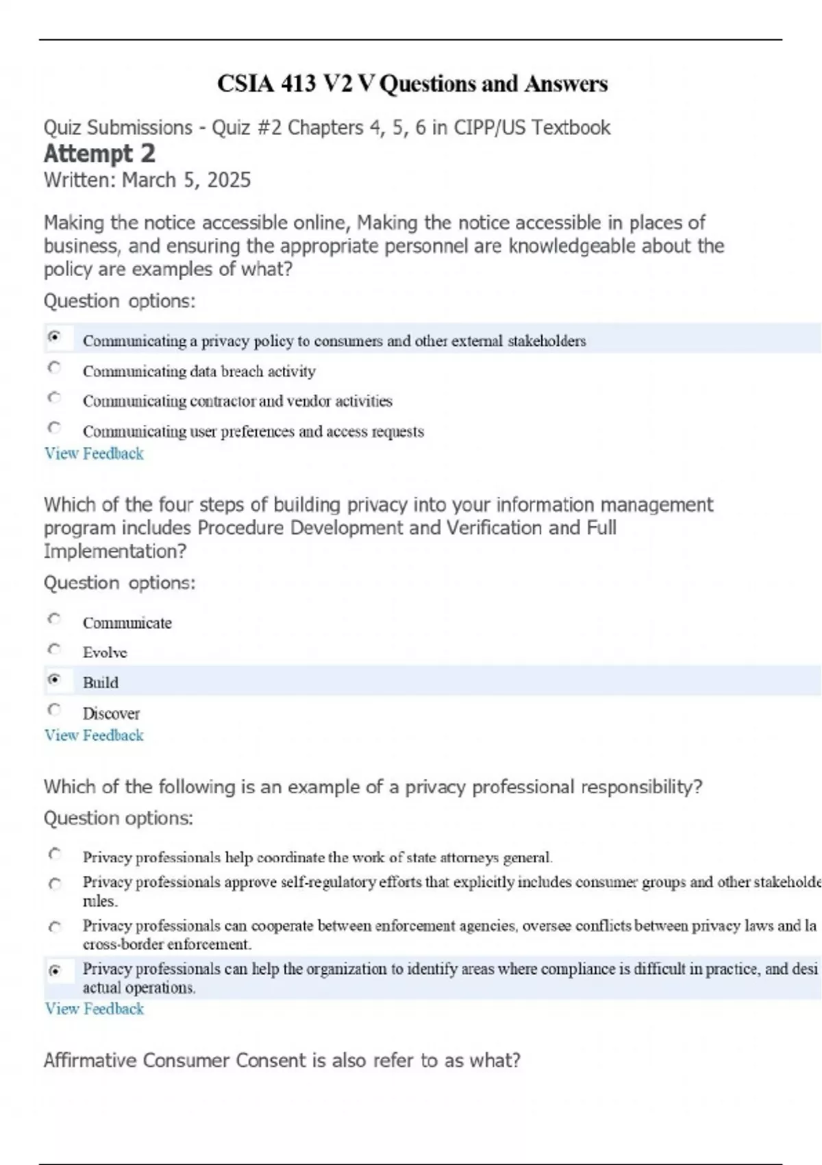 CSIA 413 V2 Questions and Answers|2025 Update|100% Correct-UMGC.