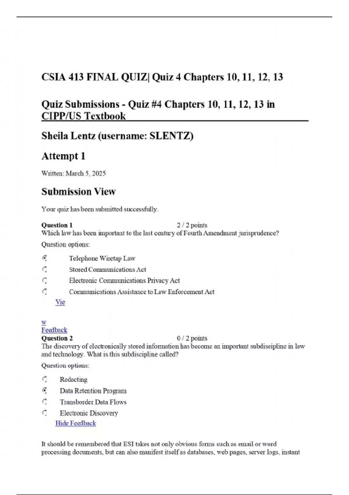 CSIA 413 FINAL QUIZ| Quiz 4 Chapters 10, 11, 12, 13 Questions and Answers|2025 Update|100% Correct.