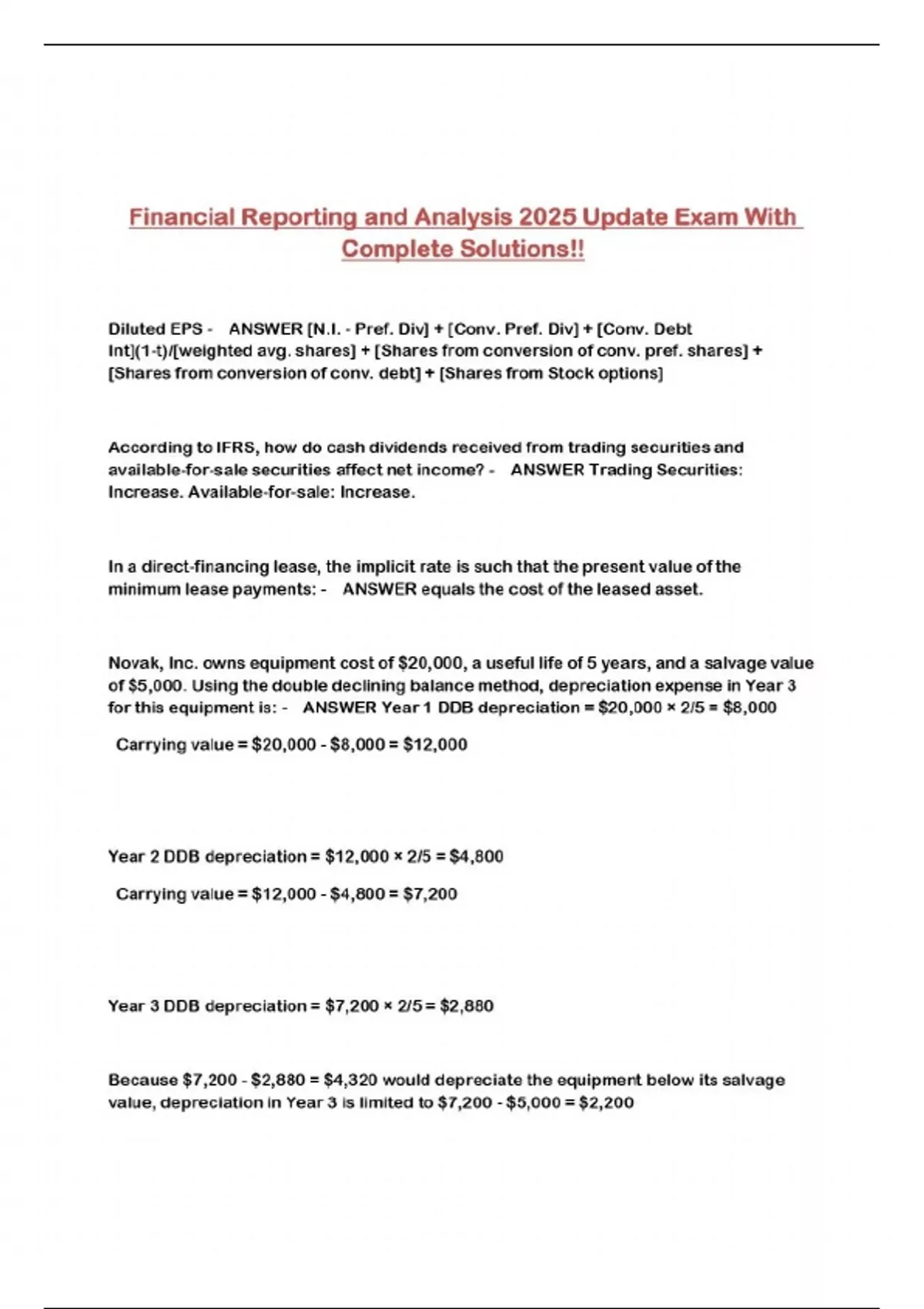 Financial Reporting and Analysis 2025 Update Exam With Complete Solutions!!...
