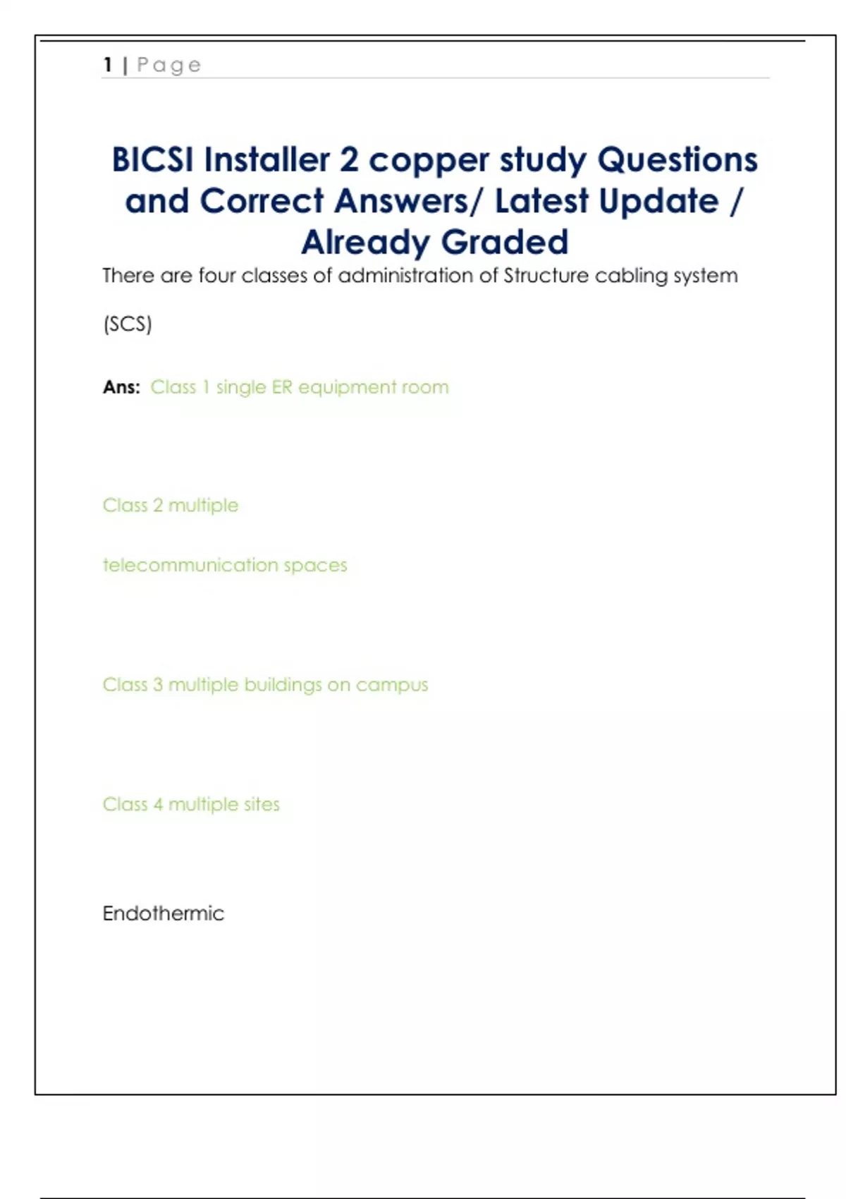 BICSI Installer 2 copper study Questions