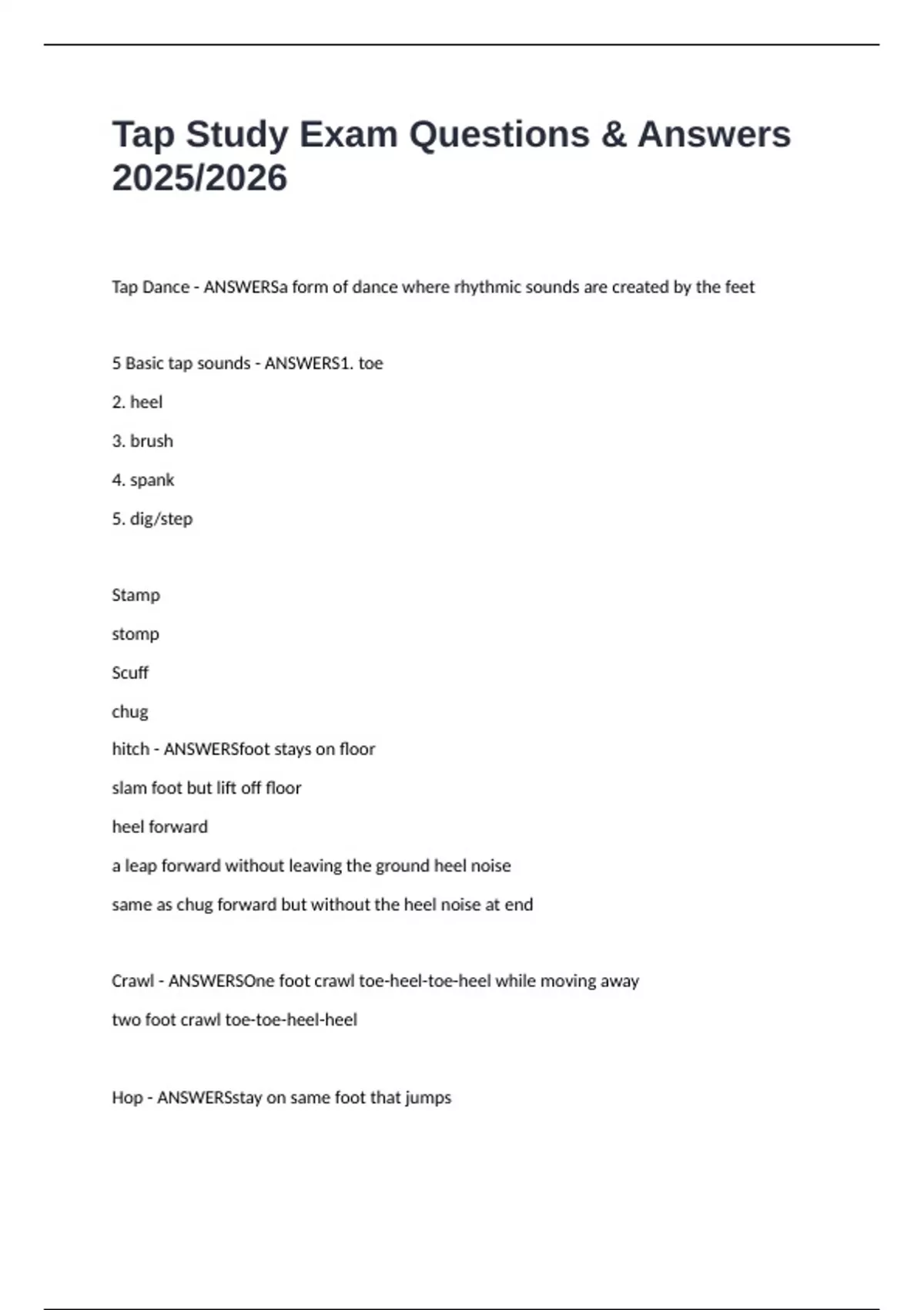 Tap Dance - ANSWERSa form of dance where rhythmic sounds are created by the feet