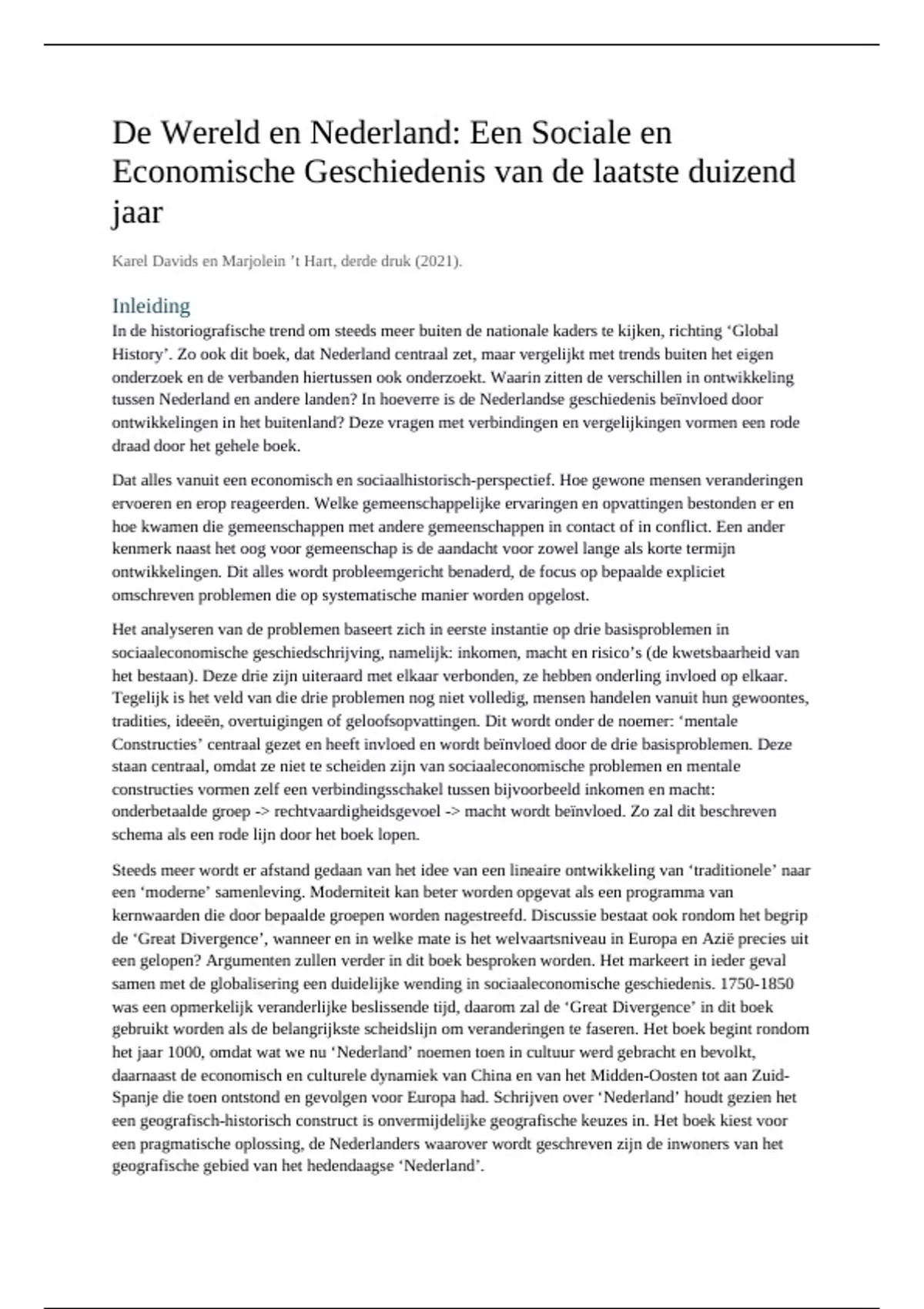 ná de Great divergence gaat. Tussen verschillende historische aspecten zal onderscheid worden