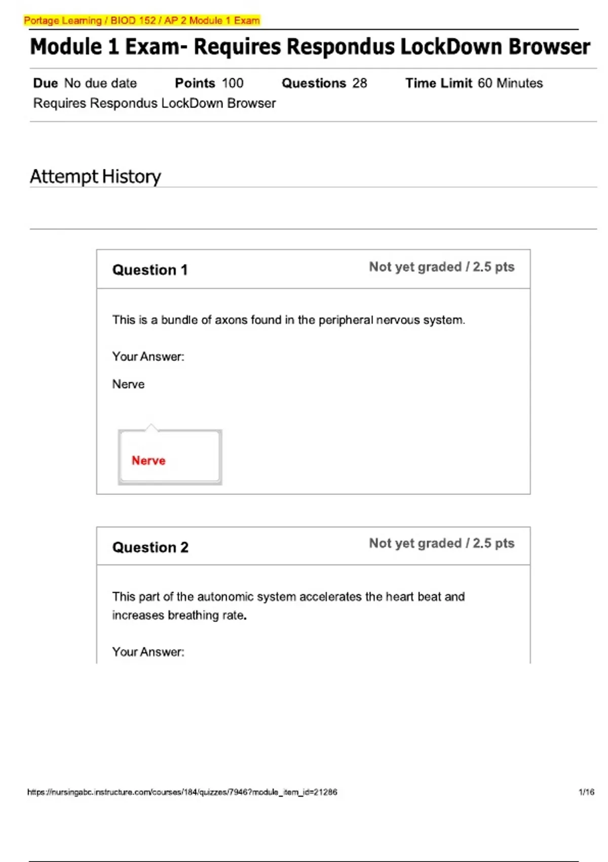 Portage Learning BIOD 152 AP 2 Module 1 Exam with complete solutions.