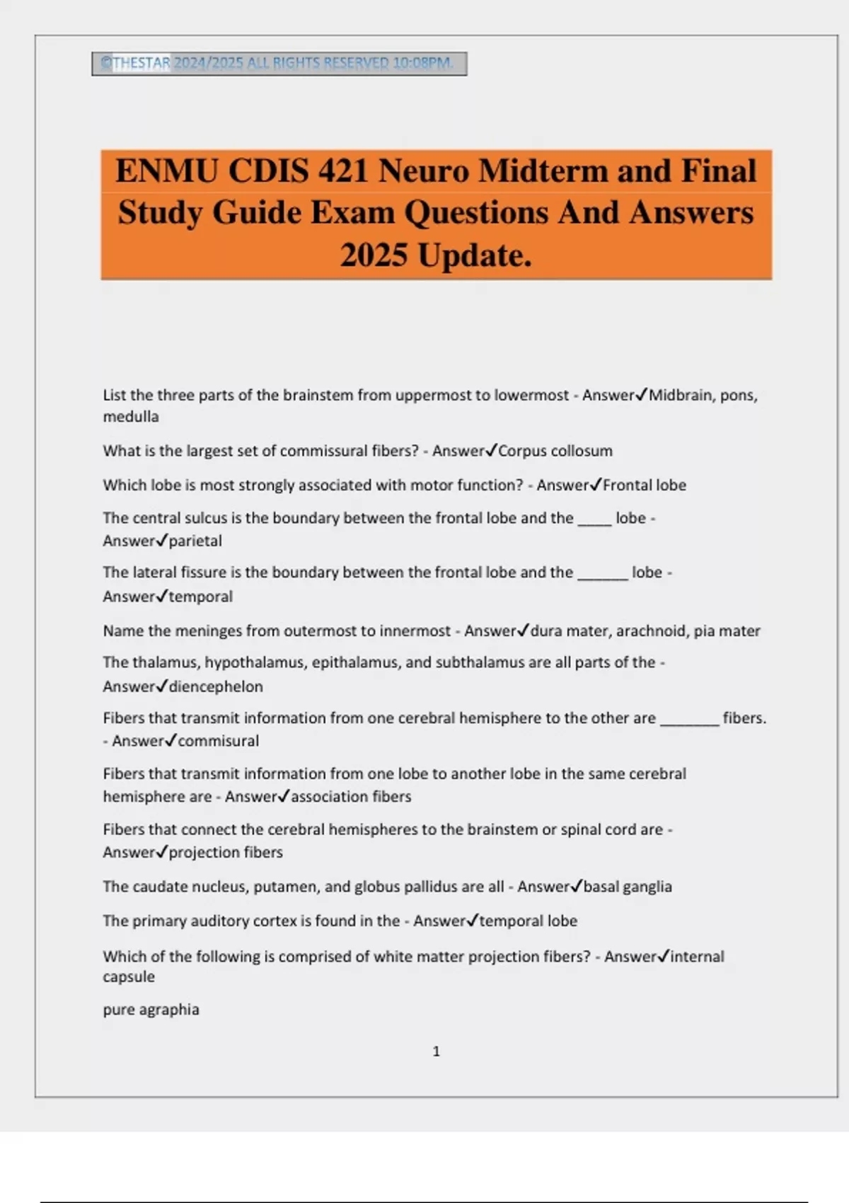 ENMU CDIS 421 Neuro Midterm and Final