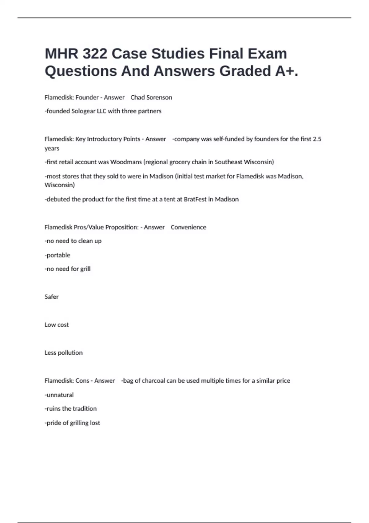 MHR 322 Case Studies Final Exam Questions And Answers Graded A+.