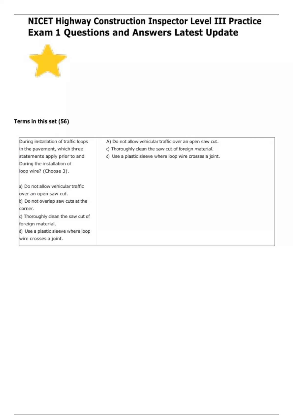 NICET Highway Construction Inspector Level III Practice Exam 1 Questions and Answers Latest Update