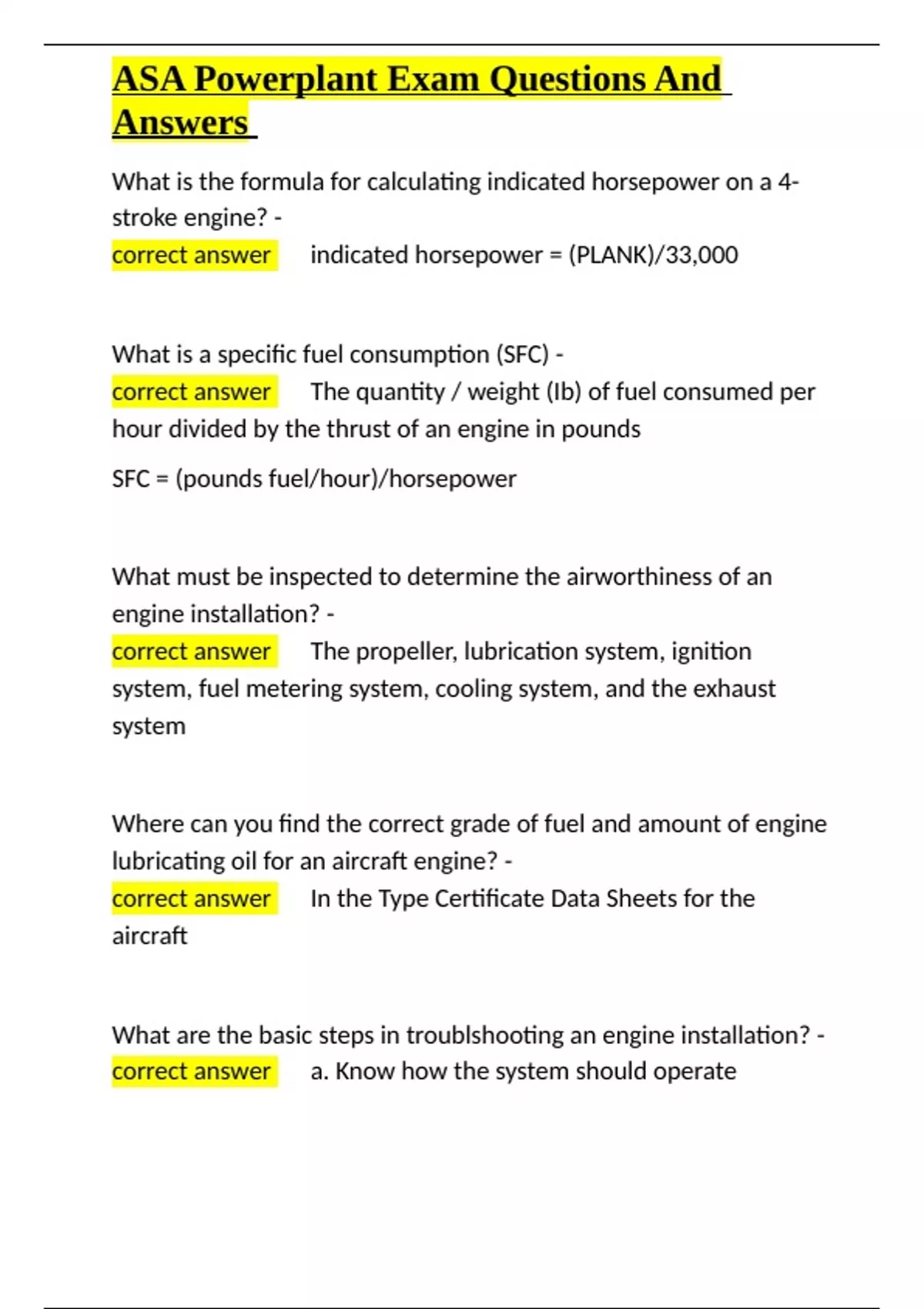 , ASA Powerplant Exam Questions And