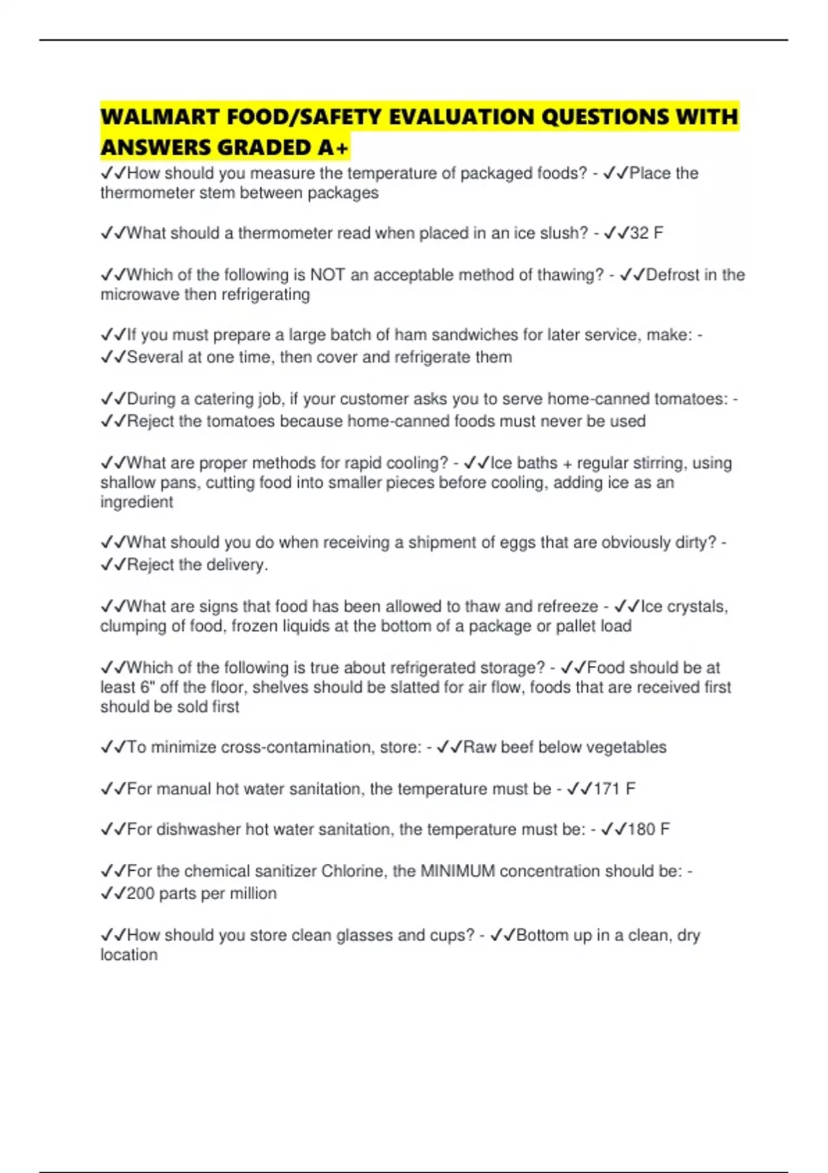 WALMART FOOD/SAFETY EVALUATION QUESTIONS WITH ANSWERS GRADED A+